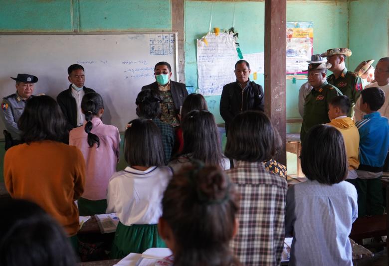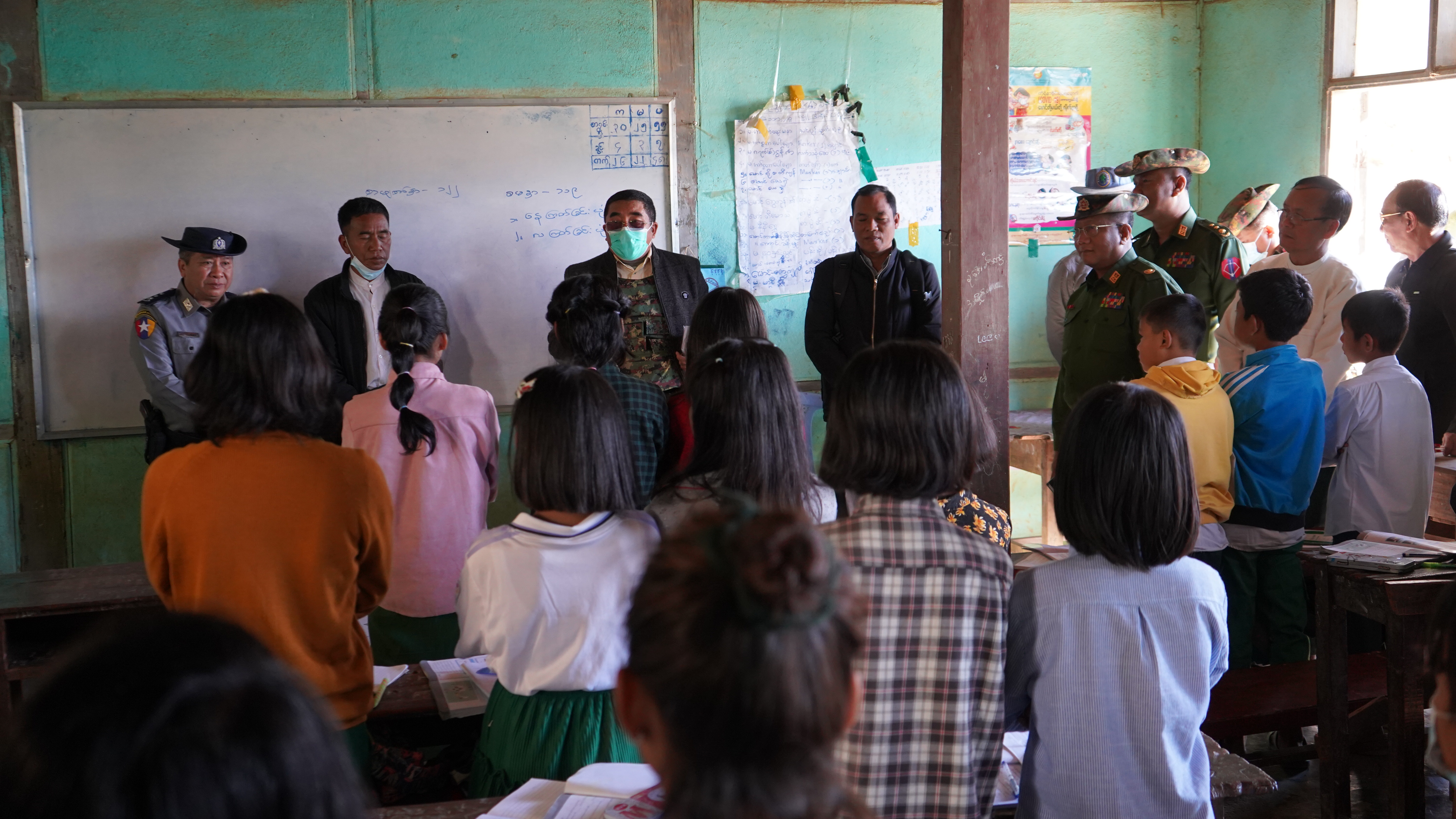 ဆက်လက်၍ ပြည်နယ်ဝန်ကြီးချုပ်နှင့် အဖွဲ့သည် အဆိုပါကျောင်းရှိ စာသင်ခန်းများသို့ သွားရောက်ပြီး  ကျောင်းသား၊ ကျောင်းသူအနေဖြင့် စာကြိုးစားရန်လိုသလို ရိုးသားဖြောင့်မတ်ရန်လိုကြောင်း၊ စာမေးပွဲ ဖြေဆိုရာတွင်လည်း ရိုးရိုးသားသား ဖြေဆိုရန်လိုကြောင်း၊ စာတော်သော်လည်း စိတ်ဓာတ်မကောင်းပါက အချည်းနှီးဖြစ်ကြောင်း၊ ဒါကြောင့် စိတ်ထားကောင်းဖို့က ပထမ၊ ပညာတတ်ဖို့က ဒုတိယဖြစ်ကြောင်း၊ ကျောင်းသား၊ ကျောင်းသူများအနေဖြင့် ကျောင်းပြင်ပအချိန်တွင်လည်း မိဘအလုပ်ကို ကိုယ့်အသိစိတ်ဖြင့် ဝိုင်းဝန်းကူညီရန် လိုအပ်ကြောင်း၊ သို့မှသာ အသက်ကြီးလာ၍ လုပ်ငန်းခွင်ဝင်ရောက်နေသည့်အချိန်တွင် လုပ်ငန်းကျွမ်းကျင်ပြီး တီထွင်ကြံဆ လုပ်ကိုင်တတ်လာမည်ဖြစ်ကြောင်း ပြောကြားသည်။
