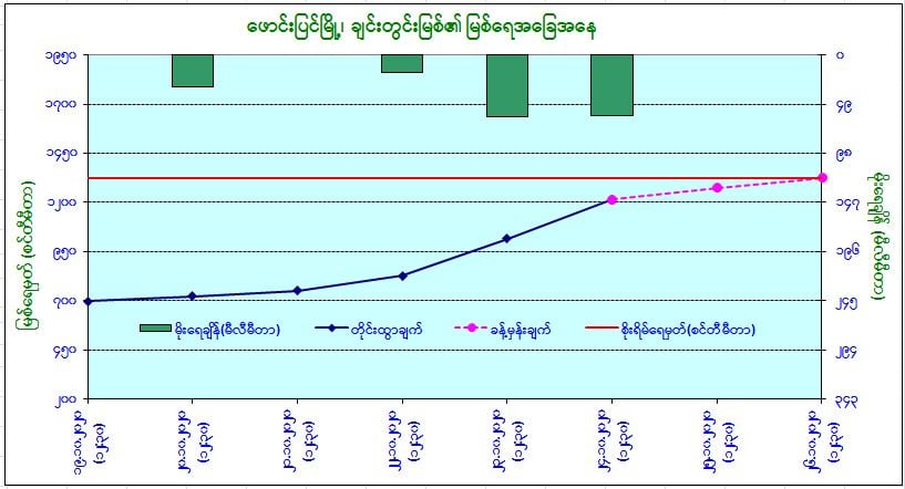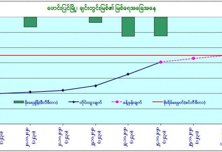 ယနေ့မြန်မာစံတော်ချိန် (၁၂:၃၀)နာရီအချိန် တိုင်းထွာချက်အရ ချင်းတွင်းမြစ်ရေသည်ဖောင်းပြင်မြို့တွင် ယင်းမြို့၏ စိုးရိမ်ရေမှတ်အောက် (၃) ပေခွဲခန့်တွင် ရောက်ရှိနေပါသည်။ အဆိုပါမြစ်ရေသည် နောက်(၂) ရက်အတွင်း ယင်းမြို့၏ စိုးရိမ်ရေမှတ်သို့ ရောက်ရှိနိုင်ပါတယ်။