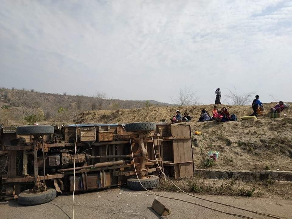 စစ်ကိုင်းတိုင်းဒေသကြီး၊ ရွှေဘိုခရိုင်၊ ခင်ဦးမြို့နယ်၊ သင်ပေါင်းကားကျေးရွာ အနီးတွင် ယမန်နေ့ နံနက် ၉ နာရီခွဲက ခရီးသည်တင်ယာဉ်တစ်စီး တိမ်းမှောက်ခဲ့ရာ ယာဉ်ပေါ်ပါ ခရီးသည် (၂၀)ဦးအနက် (၁၂)ဦး ဒဏ်ရာရရှိသွားကြောင်း သိရသည်။