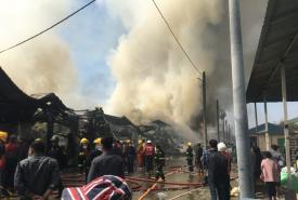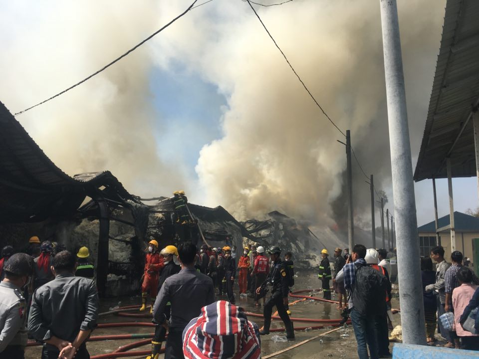 မနက်၈နာရီကျော်က မီးစတင်လောင်ကျွမ်းနေတာဖြစ်ပြီး လက်ရှိအချိန်ထိဆက်လက် ငြှိမ်းသတ်နေရပြီး အရေးပေါ်လူမှုကူညီရေးအသင်းနှင့် ကြက်ခြေနီအသင်းများပါ စောင့်ကြည့်နေကြောင်း တွေ့ရသည်။