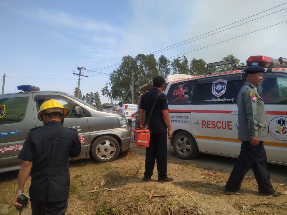 လက်ရှိအချိန်မှာ ပြာမှုန့်များ၊ မီးခိုးများ များပြားနေသည့်အတွက် မီးငြှိမ်းသတ်နေသည့် မီးသတ်သမားများ နှင့်အတူ မီးငြှိမ်းသတ်ရာတွင် ကူညီနေတဲ့ ပြည်သူတချို့မှာပါ အောက်ဆီဂျင်ပြတ်လပ်မှုနှင့် ရင်ဆိုင်နေရသည်။ အဆိုပါအောက်ဆီဂျင်ပြတ်လပ်မှုနှင့် ရင်ဆိုင်နေရသူများကို အရေးပေါ်ဆေးရုံ ပို့ရသူတွေရှိကြောင်း မီးလောင်သည့်နေရာကို ရောက်ရှိနေသည့် Myanmar Digital News သတင်းထောက် မဖြိုးအိက ပြောသည်။