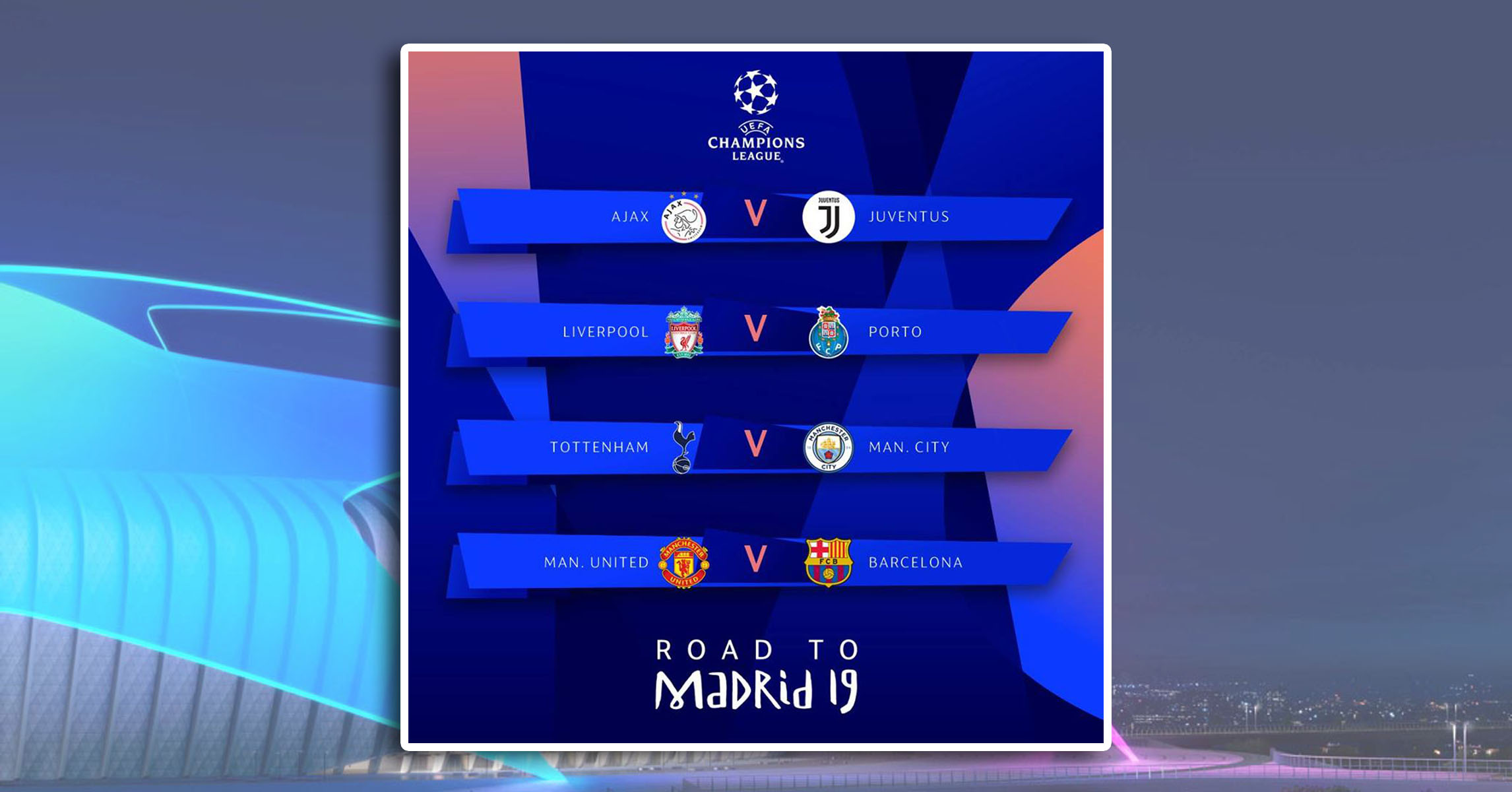 မဲခွဲရွေးချယ်ခဲ့ရာတွင် စပါးနှင့် မန်စီးတီး၊ လီဗာပူးနှင့်ပေါ်တို၊ အေဂျက်နှင့်ဂျူဗင်တပ်၊ မန်ယူနှင့်ဘာစီလိုနာ အသင်းတို့ တွေ့ဆုံနေတာကို တွေ့ရသည်။