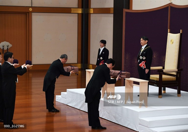 ဂျပန်ဧကရာဇ်အသစ် နာရူဟီတိုဟာ ဒီကနေ့ဗုဒ္ဓဟူးနေ့မှာ ခရစ်ဆန်သီမန် ထီးနန်း တရားဝင် ဆက်ခံခဲ့ပါတယ်။ မနေ့က ဖခင်ဖြစ်သူက ဧကရာဇ်တာဝန်ယူကို စွန့်လွှတ်အနားယူပြီး သားဖြစ်သူအိမ်ရှေ့မင်းသား နာရူဟီတိုက ဧကရာဇ်ရာထူးကို ဆက်ခံခဲ့တာဖြစ်ပါတယ်။