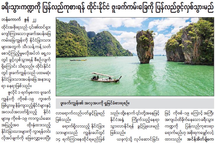 ခရီးသွားကဏ္ဍကို ပြန်လည်ကုစားရန် ထိုင်းနိုင်ငံ ဖူးခက်ကမ်းခြေကို ပြန်လည်ဖွင့်လှစ်သွားမည်