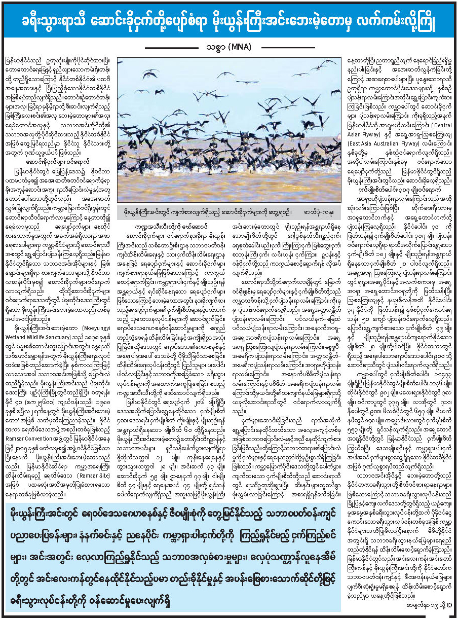 ခရီးသွားရာသီ ဆောင်းခိုငှက်တို့ပျော်စံရာ မိုးယွန်းကြီးအင်းဘေးမဲ့တောမှ လက်ကမ်းလို့ကြို