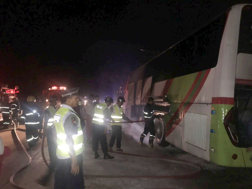 မေ ၁၇ ရက် ည ၁၁ နာရီခွဲခန့်က ပဲခူးတိုင်းဒေသကြီး၊ ရန်ကုန်-နေပြည်တော် အမြန်လမ်းမကြီး မိုင်တိုင်အမှတ် (၃၉/ဝ)ကြားတွင် ခရီးသည်ယာဉ်တစ်စီး နောက်တာယာ အပူလွန်ကဲရာမှ မီးလောင်မှုဖြစ်ပွားခဲ့ကြောင်း ရဲတပ်ဖွဲ့ သတင်းထုတ်ပြန်ချက်အရ သိရှိရသည်။