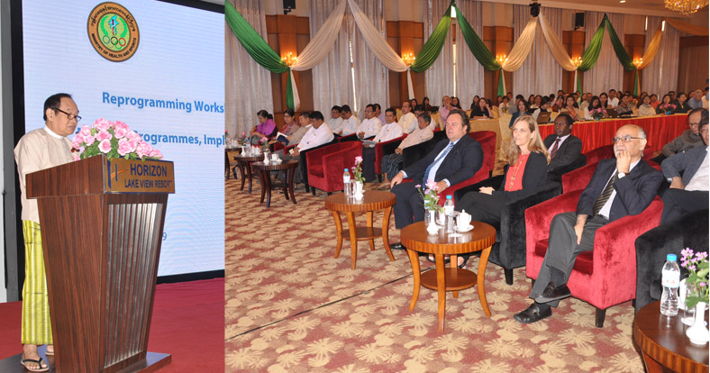 ကမ္ဘာ့ရန်ပုံငွေအဖွဲ့ အထောက်အပံ့ဖြင့် ဆောင်ရွက်သော ခုခံအားကျဆင်းမှု ကူးစက်ရောဂါ၊ တီဘီနှင့် ငှက်ဖျားရောဂါစီမံချက်များအား ကမ္ဘာ့ကျန်းမာရေးအဖွဲ့၊ UNOPS နှင့် မိတ်ဖက်အဖွဲ့အစည်း များနှင့်ပူးပေါင်း၍ စီမံချက်ပြန်လည်မွမ်းမံရေးဆွဲခြင်း အလုပ်ရုံဆွေးနွေးပွဲကို ယနေ့နံနက်ပိုင်းတွင် နေပြည်တော်ရှိ Horizontal Lake View Hotel ၌ ကျင်းပသည်။