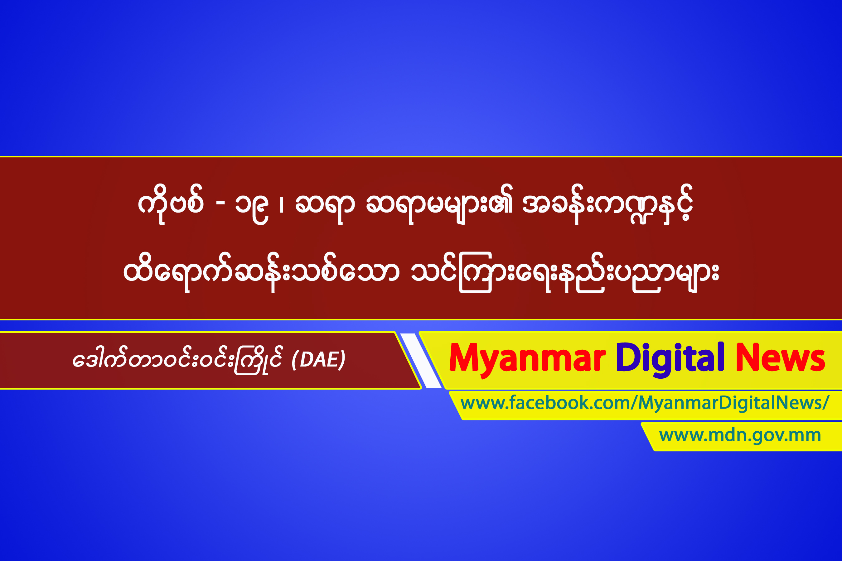 ကျွန်မတို့ နိုင်ငံတော်အစိုးရက COVID-19 Economic Relief Plan (CERP) ကို ဦးစီးဆောင်ရွက်နေပြီး သက်ဆိုင်ရာ ဝန်ကြီးဌာနများအလိုက် ကိုဗစ် - ၁၉ ကို ရင်ဆိုင်ရန် အစီအစဉ်များလည်း ဂရုပြုဆောင်ရွက်နေကြပြီ ဖြစ်ပါသည်။ ပညာရေးဝန်ကြီးဌာနအနေဖြင့်လည်း ကပ်ရောဂါနှင့် အလွန်ကာလများတွင် ပညာသင်ကြားရေးလုပ်ငန်းစဉ်များကို အဆက်မပြတ်စေရန် ကိုဗစ် - ၁၉ အရေးပေါ်တုံ့ပြန်အစီအစဉ်များ၊ ပြန်လည် ထူထောင်ရေးအစီအစဉ်များနှင့် ရေရှည်လုပ်ငန်းရပ်များ ရေးဆွဲပြီး ပညာသင်ယူမှု မနှောင့်နှေးရေး၊ မရပ်တန့်ရေး၊ ပိုမိုကောင်းမွန်လာစေရေးတို့အတွက် ရောဂါကာကွယ်ရေးနှင့် ဘေးကင်းလုံခြုံသောအစီအမံများ စနစ်တကျ ပြုလုပ်ပြီး တီထွင်ဆန်းသစ်သော နည်းလမ်းများကို အရေးကြီးဦးစားပေးလုပ်ငန်းစဉ်များအလိုက် အကောင်အထည်ဖော် ဆောင်ရွက်လျက်ရှိနေပါသည်။