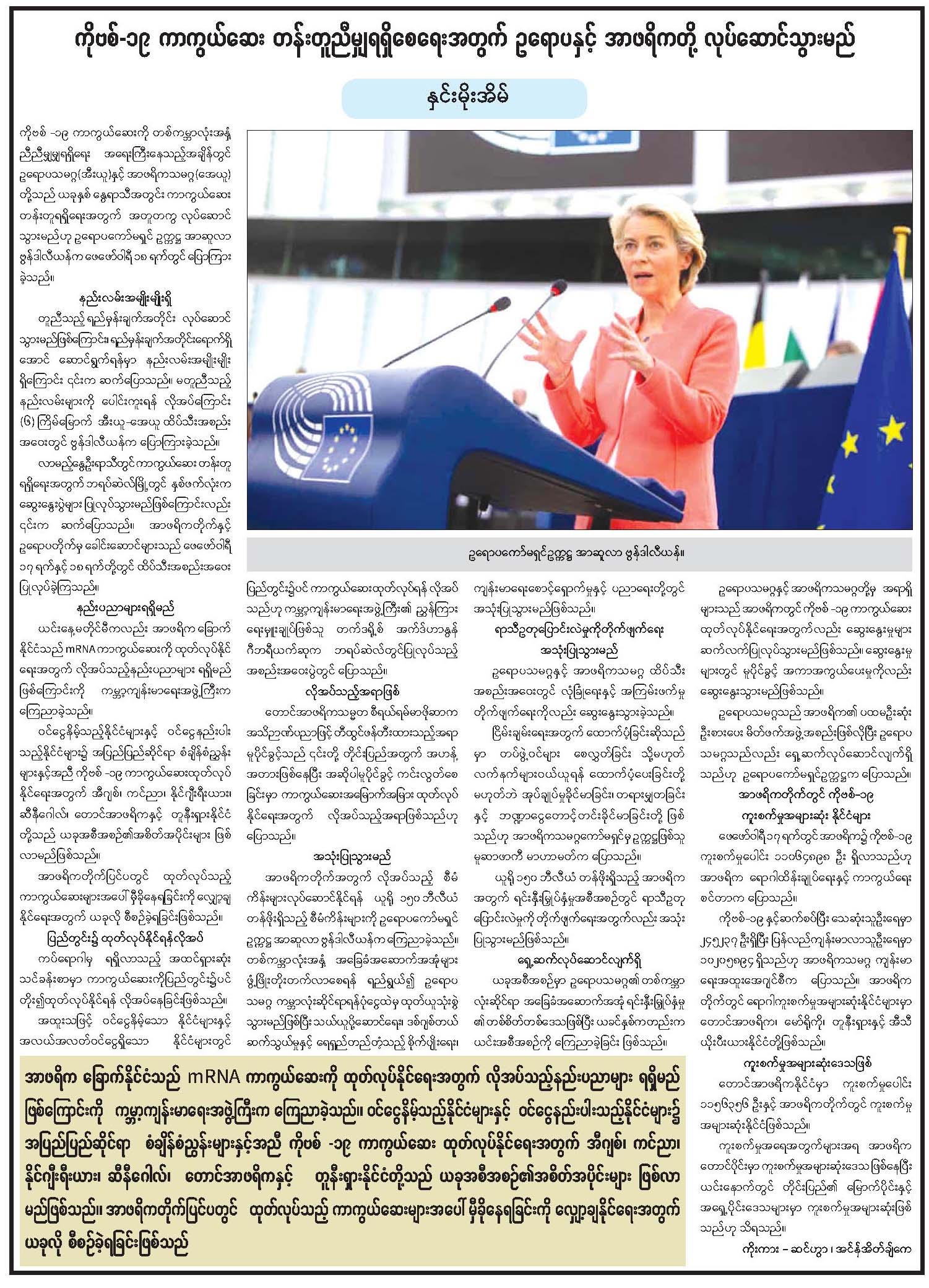 ကိုဗစ်-၁၉ ကာကွယ်ဆေး တန်းတူညီမျှရရှိစေရေးအတွက် ဥရောပနှင့် အာဖရိကတို့ လုပ်ဆောင်သွားမည်