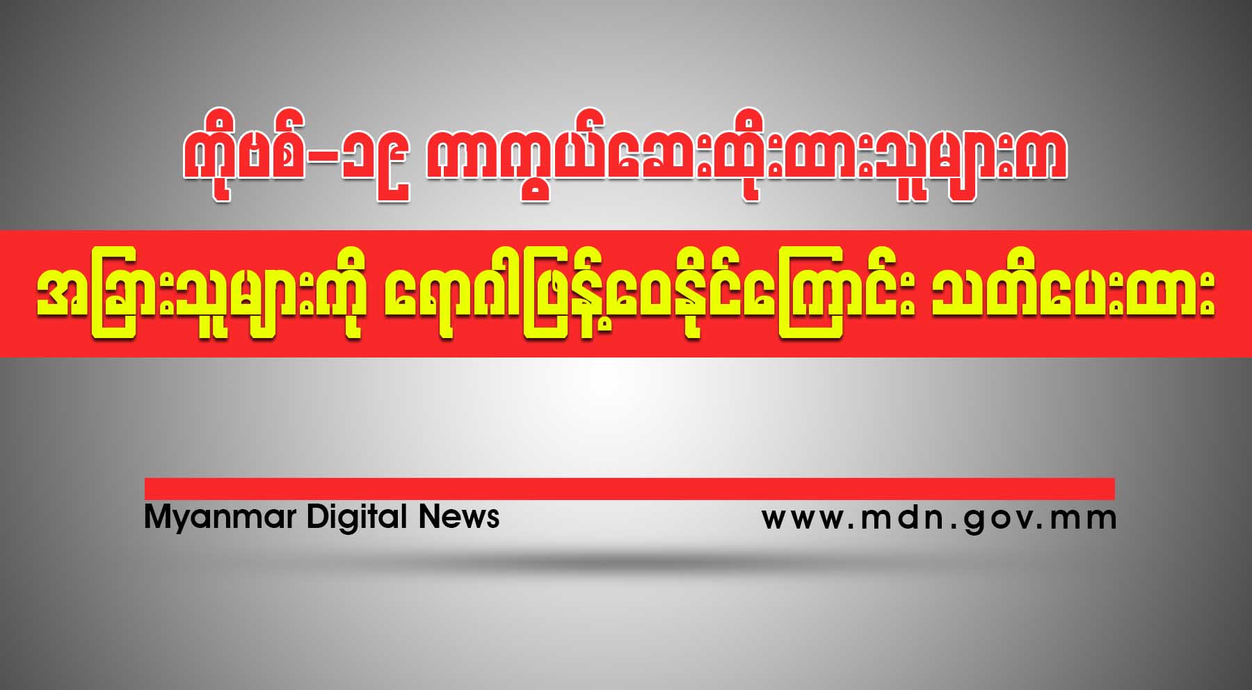 ကိုဗစ်-၁၉ ကာကွယ်ဆေးထိုးခြင်း ခံယူထားသူများသည် မိမိကိုယ်ကိုယ် ရောဂါမကူးစက်အောင် ကာကွယ်ထားပြီဖြစ်သော်လည်း အခြားသူများသို့ ဗိုင်းရပ်စ်ကူးစက် ဖြန့်ဝေနိုင်သေးသည်ဖြစ်ရာ ပြည်သူများအနေဖြင့် ကန့်သတ်ပိတ်ဆို့မှုစည်းကမ်းချက်များကို ဆက်လက်လိုက်နာဆောင်ရွက် ကြစေလိုကြောင်း အင်္ဂလန်ဒုတိယဆေးဘက်အရာရှိချုပ် ဂျိုနသန်ဗန်တမ်က သတိပေးပြောကြားလိုက်သည်။