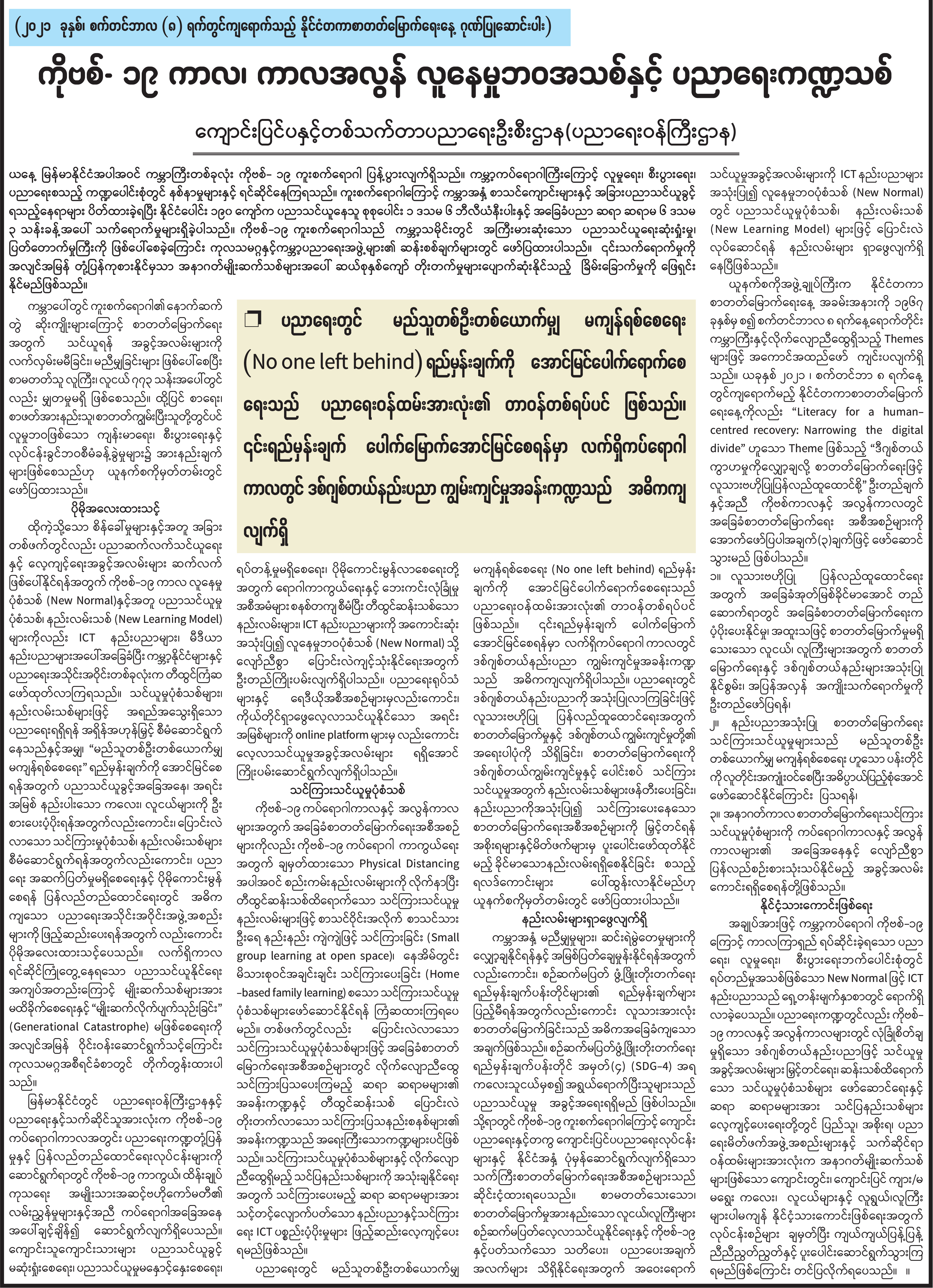 ကိုဗစ်-၁၉ ကာလ ၊ ကာလအလွန် လူနေမှုဘဝအသစ်နှင့် ပညာရေးဏ္ဍသစ်