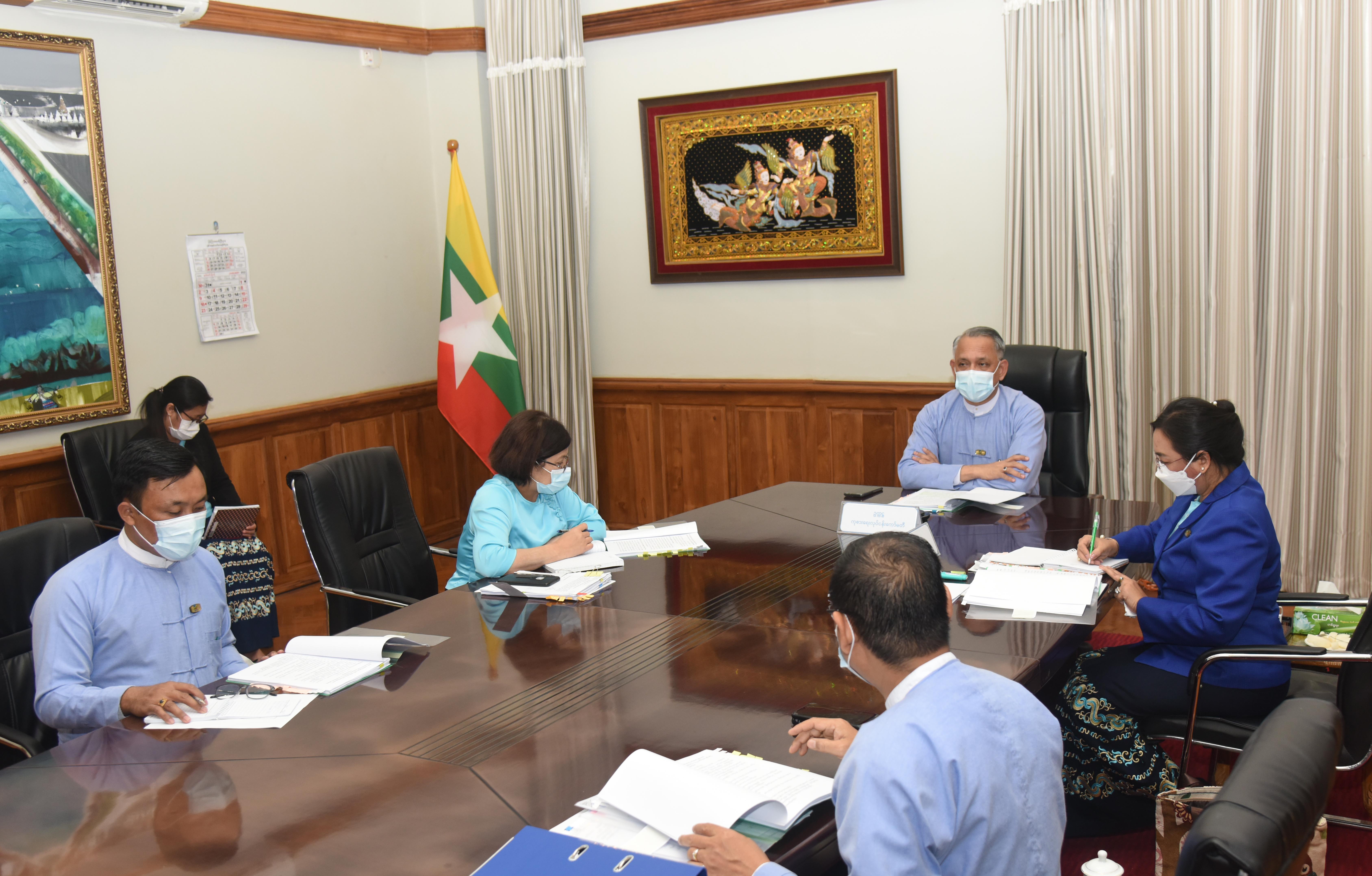 အစည်းအဝေးတွင် လုပ်ငန်းကော်မတီဥက္ကဋ္ဌက ကိုဗစ်-၁၉ ရောဂါဖြစ်ပွားမှုကြောင့် ထိခိုက်ခဲ့သည့် နိုင်ငံသားပိုင် ငါး၊ ပုဇွန် မွေးမြူရေးအပါအဝင် မွေးမြူရေးကဏ္ဍမှ သတ်မှတ်ချက်နှင့် ကိုက်ညီသော လုပ်ငန်းများအား ချေးငွေထုတ်ပေးခဲ့သည့် အခြေအနေ၊ ရုပ်ရှင်၊ ဂီတ၊ သဘင်၊ စာနယ်ဇင်းနှင့် မီဒီယာကဏ္ဍများအား ဘဏ္ဍာရေးဆိုင်ရာ အကူအညီပေးနိုင်ရေးအတွက် လုပ်ငန်း ဆက်လက်ဆောင်ရွက်နေမှုနှင့် ချေးငွေများ အမြန်ဆုံးထုတ်ပေးနိုင်ရန် ညှိနှိုင်းပေါင်းစပ် ဆောင်ရွက်ထားရှိမှု အခြေအနေများနှင့် လုပ်ငန်းကော်မတီက ဆောင်ရွက်ပေးခဲ့သည့် အခြေအနေများကို ဆွေးနွေးသည်။