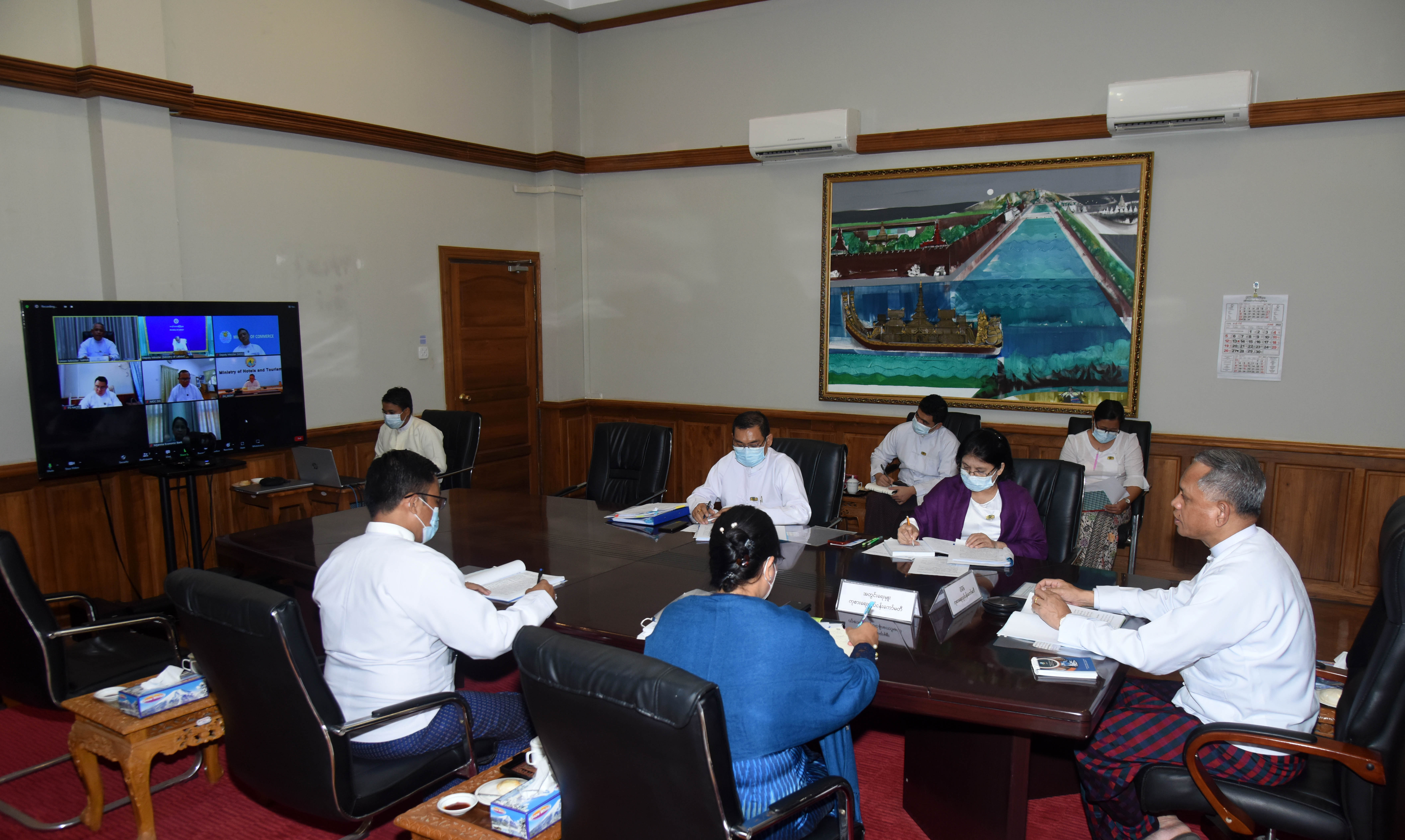 ကိုဗစ်-၁၉ ကြောင့် ဖြစ်ပေါ်လာနိုင်သည့် စီးပွားရေးသက်ရောက်မှုများအပေါ် ကုစားရေး လုပ်ငန်း ကော်မတီ၏ အစည်းအဝေးအမှတ်စဉ် (၄/၂၀၂၂) ကို ယနေ့မွန်းလွဲပိုင်းတွင် ရင်းနှီးမြှုပ်နှံမှုနှင့် နိုင်ငံခြားစီးပွားဆက်သွယ်ရေးဝန်ကြီးဌာန၊ ရုံးအမှတ် (၁) ၌ ဗွီဒီယိုကွန်ဖရင့်စနစ်ဖြင့် ကျင်းပသည်။