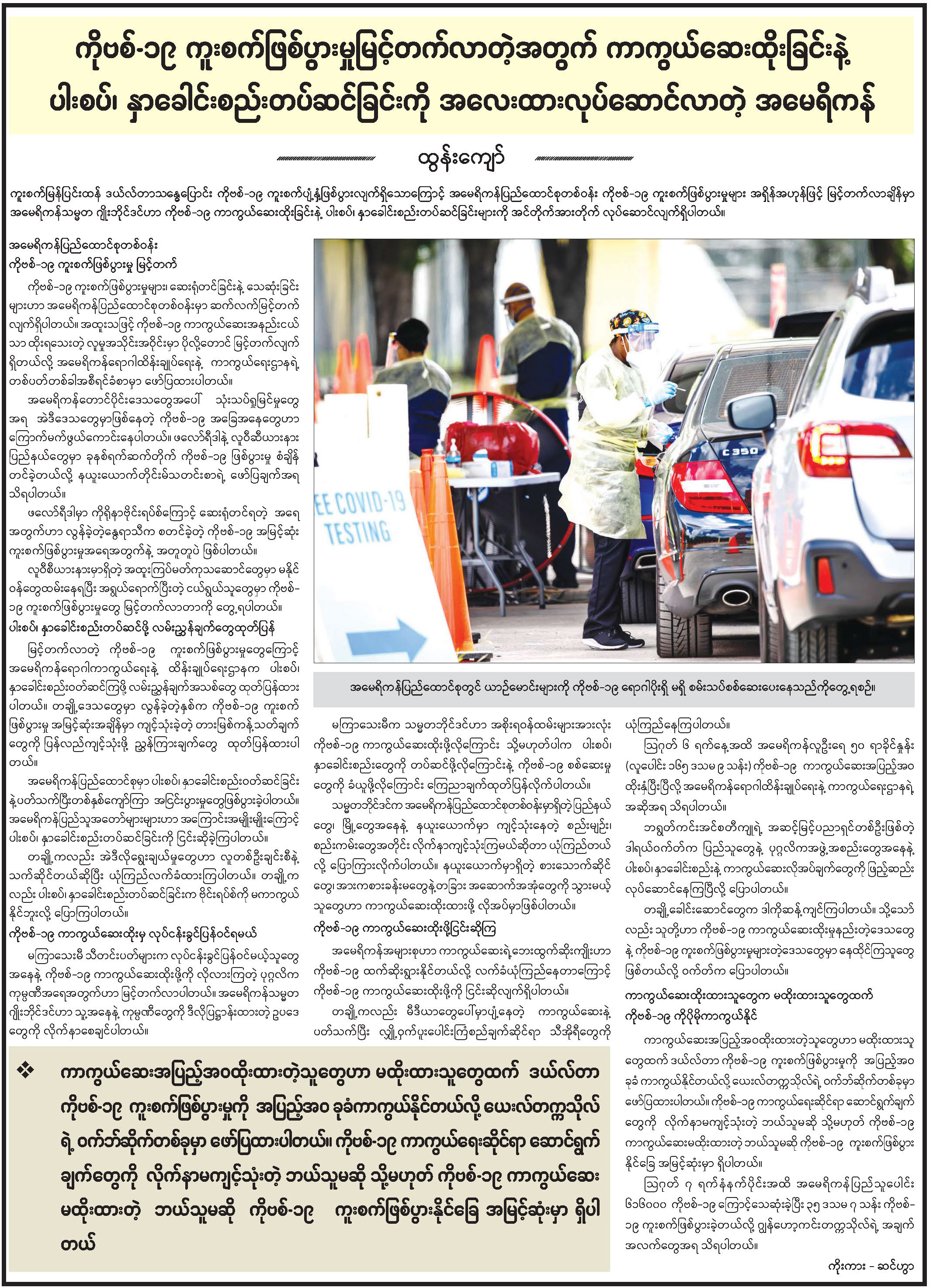 ကိုဗစ်-၁၉ ကူးစက်ဖြစ်ပွားမှု မြင့်တက်လာတဲ့အတွက် ကာကွယ်ဆေးထိုးခြင်းနဲ့ ပါးစပ်၊ နှာခေါင်းစည်းတပ်ဆင်ခြင်းကို အလေးထားလုပ်ဆောင်တာတဲ့ အမေရိကန်