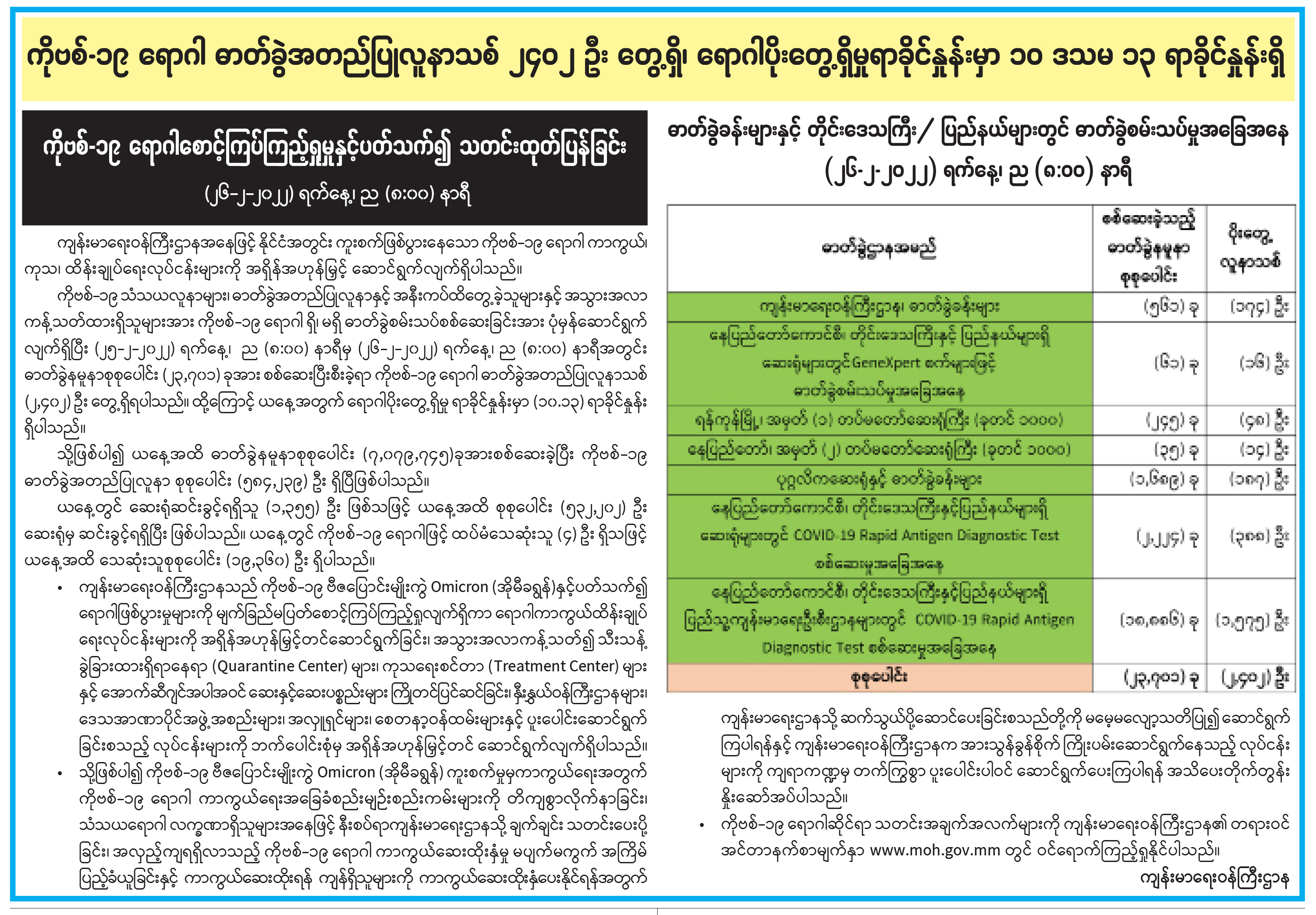 ကိုဗစ်-၁၉ ရောဂါ ဓာတ်ခွဲအတည်ပြုလူနာသစ် ၂၄၀၂ ဦး တွေ့ရှိ၊ ရောဂါပိုးတွေ့ရှိမှုရာခိုင်နှုန်းမှာ ၁၀ ဒသမ ၁၃ ရာခိုင်နှုန်းရှိ