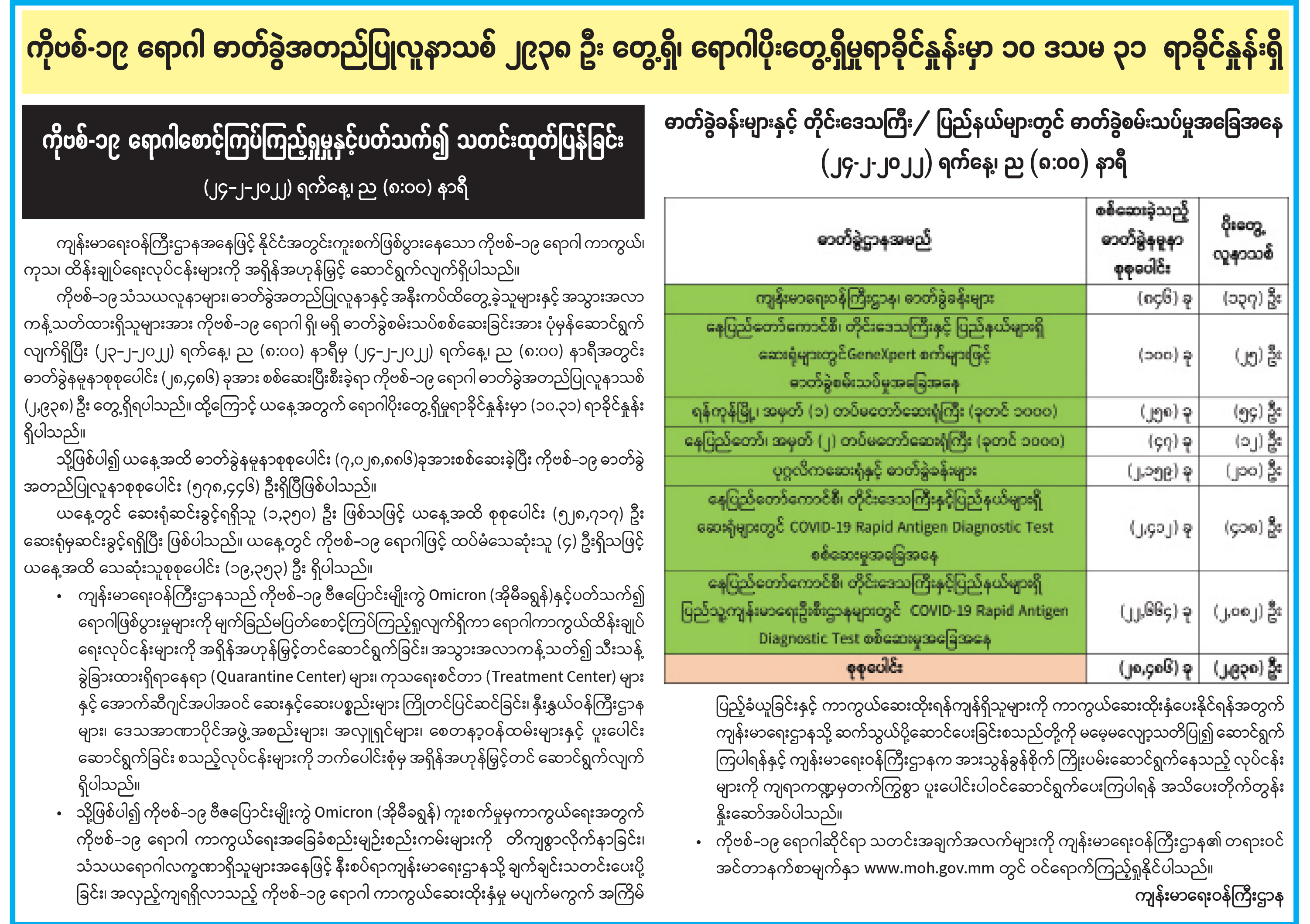ကိုဗစ်-၁၉ ရောဂါ ဓာတ်ခွဲအတည်ပြုလူနာသစ် ၂၉၃၈ ဦး တွေ့ရှိ၊ ရောဂါပိုးတွေ့ရှိမှုရာခိုင်နှုန်းမှာ ၁၀ ဒသမ ၃၁ ရာခိုင်နှုန်းရှိ