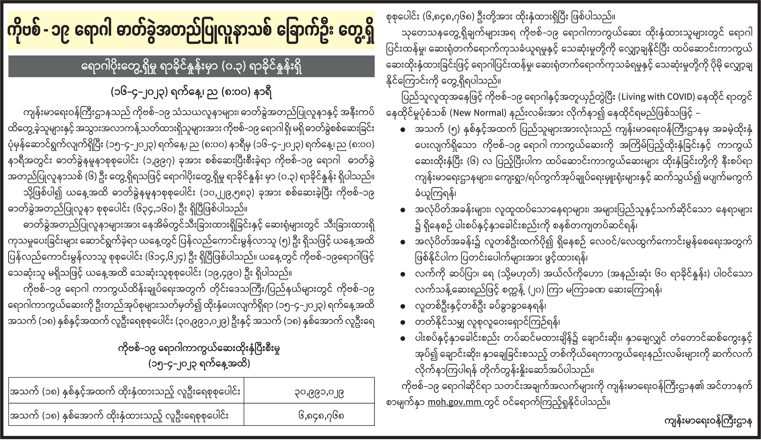 ကိုဗစ်-၁၉ ရောဂါ ဓာတ်ခွဲအတည်ပြုလူနာသစ် ခြောက်ဦး တွေ့ရှိ