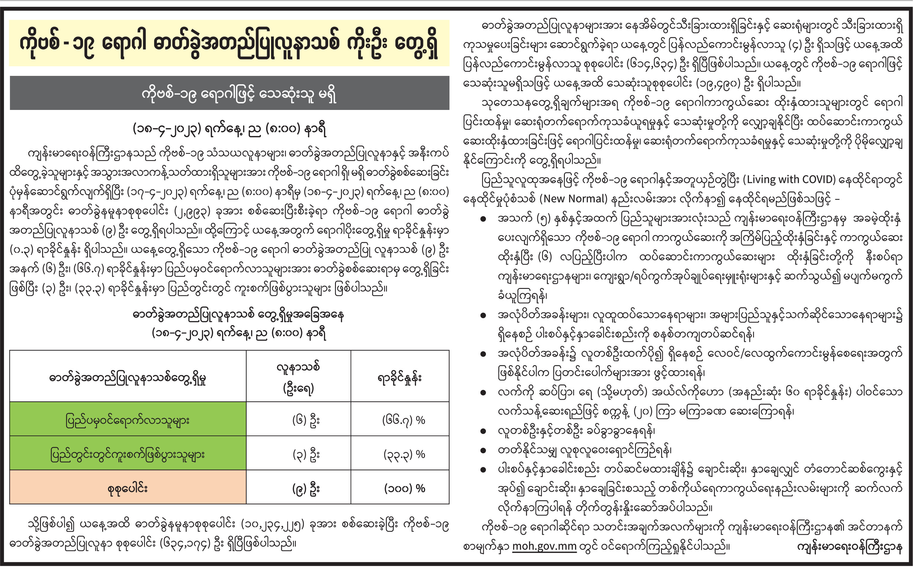 ကိုဗစ်-၁၉ ရောဂါ ဓာတ်ခွဲအတည်ပြုလူနာသစ် ကိုးဦး တွေ့ရှိ
