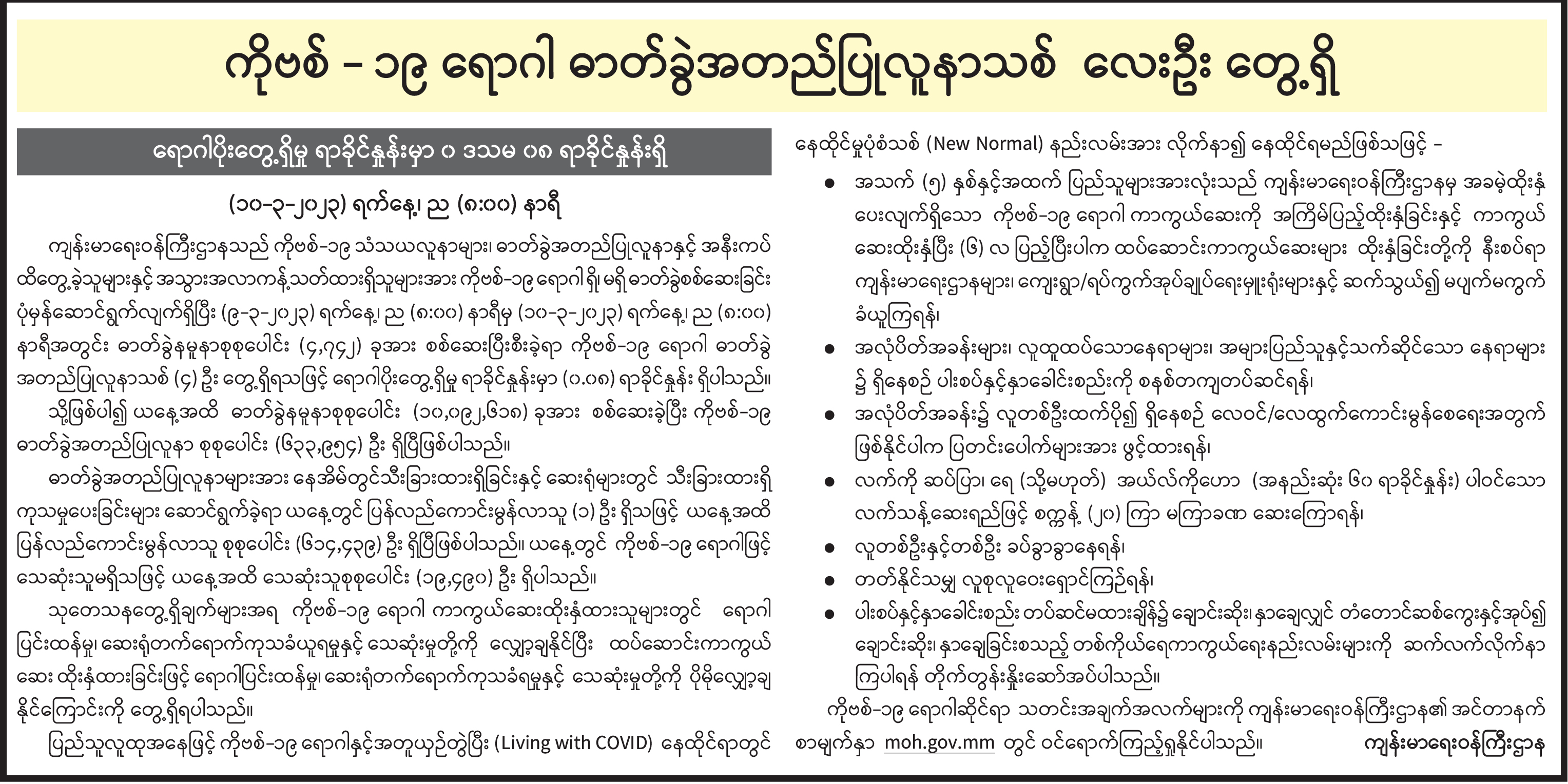 ကိုဗစ်-၁၉ ရောဂါ ဓာတ်ခွဲအတည်ပြုလူနာသစ် လေးဦး တွေ့ရှိ