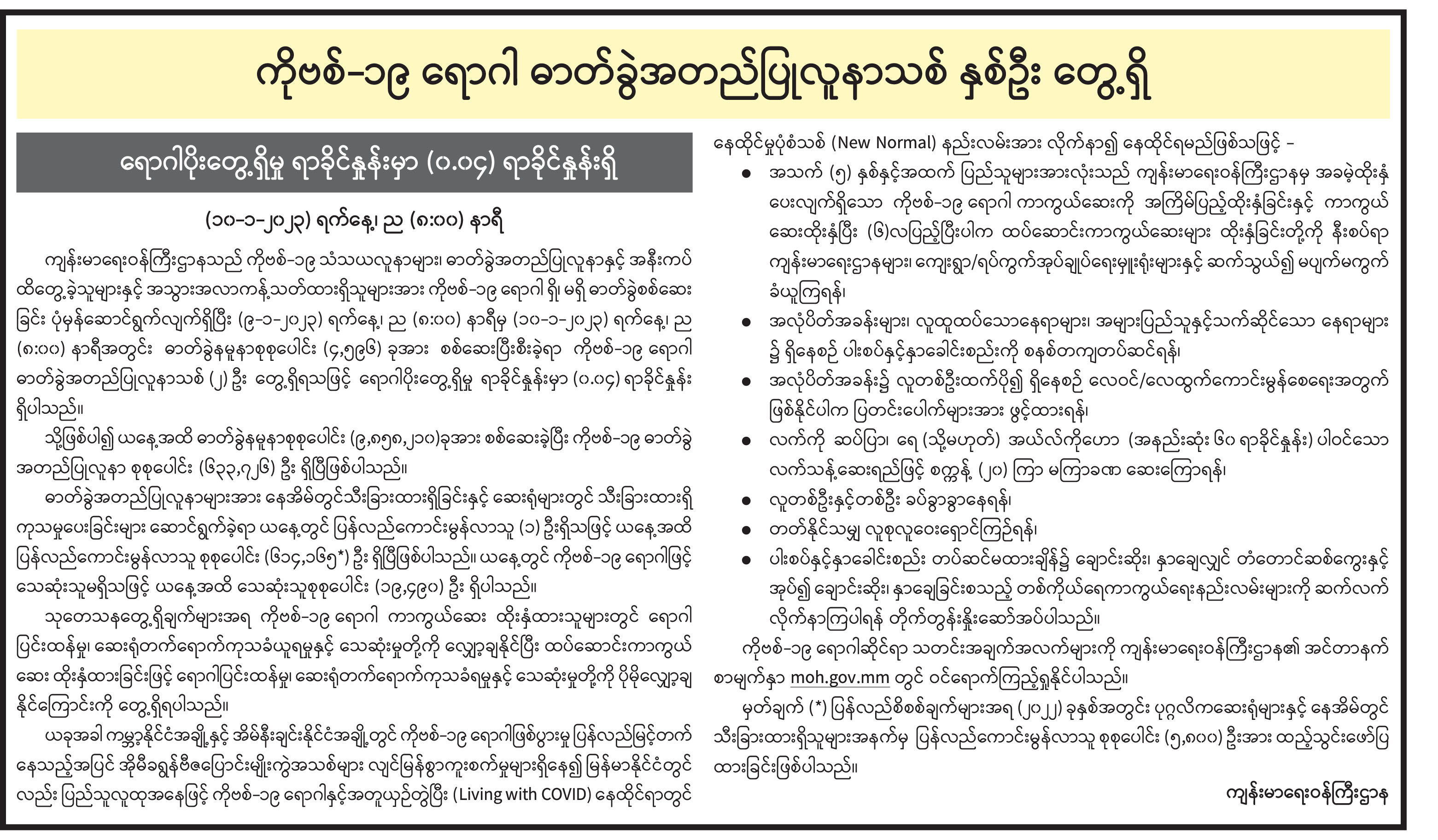ကိုဗစ်-၁၉ ရောဂါ ဓာတ်ခွဲအတည်ပြုလူနာသစ် နှစ်ဦး တွေ့ရှိ