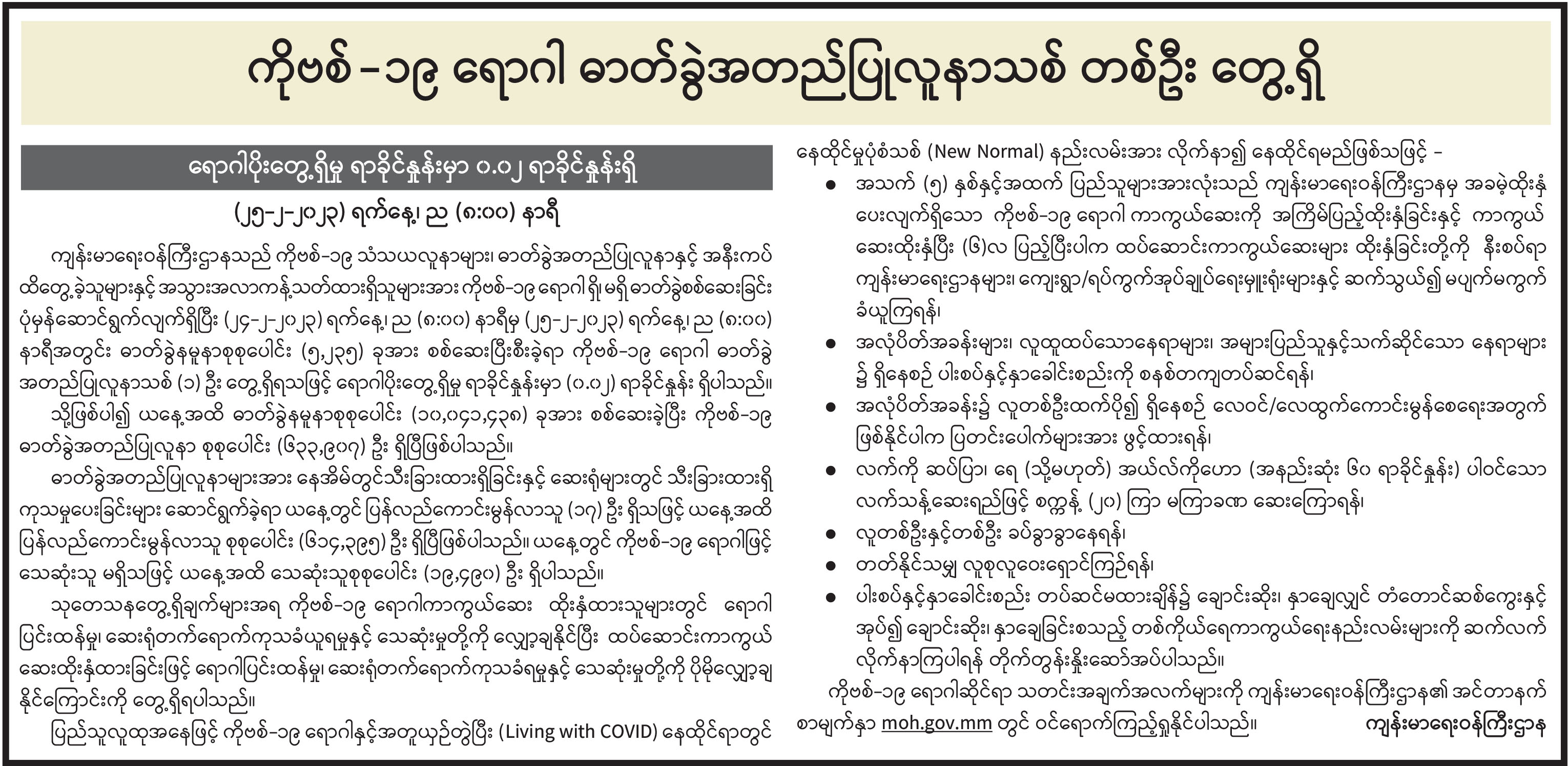 ကိုဗစ်-၁၉ ရောဂါ ဓာတ်ခွဲအတည်ပြုလူနာသစ် တစ်ဦး တွေ့ရှိ