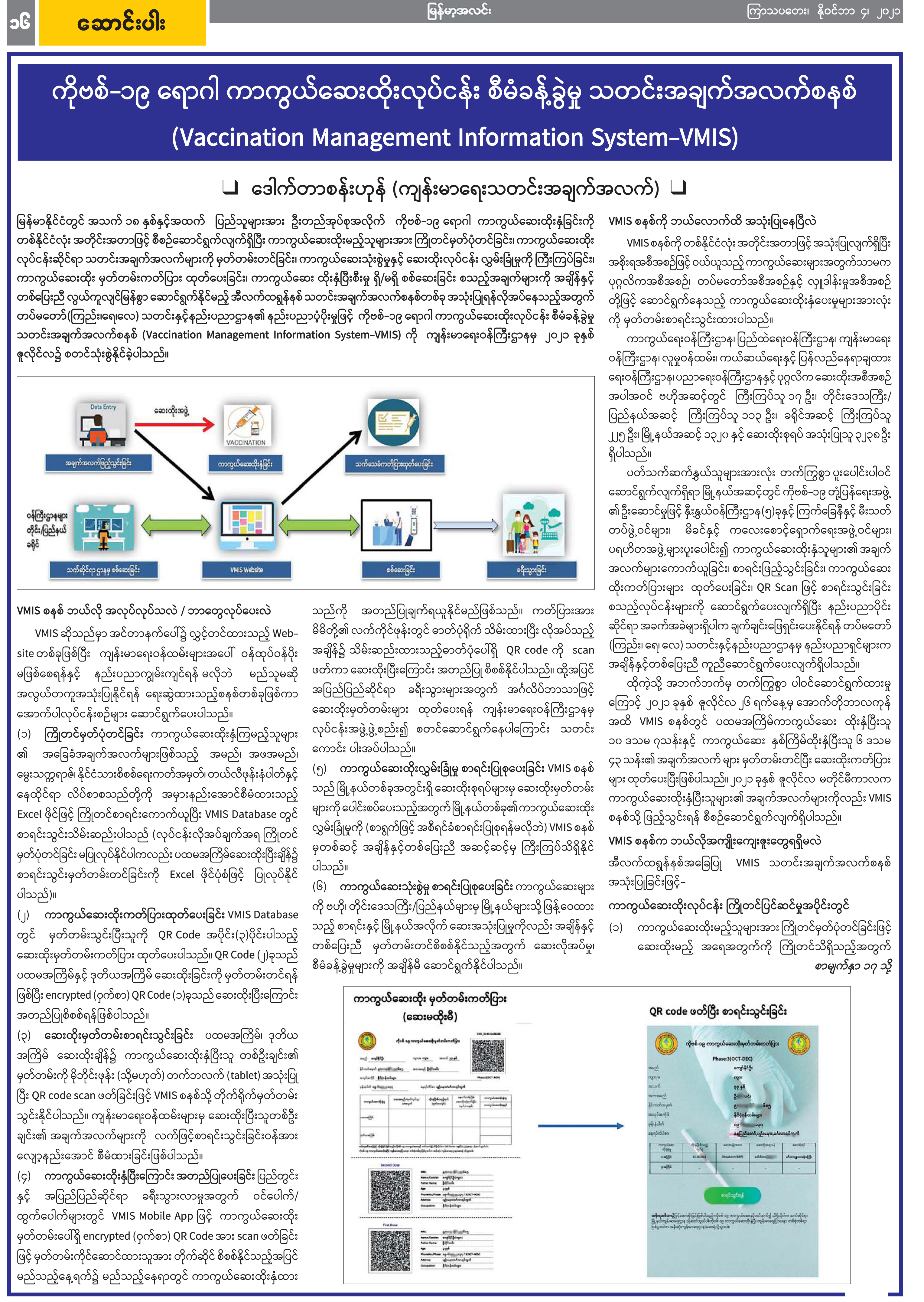 ကိုဗစ်-၁၉ ရောဂါ ကာကွယ်ဆေးထိုးလုပ်ငန်း စီမံခန့်ခွဲမှု သတင်းအချက်အလက်စနစ်