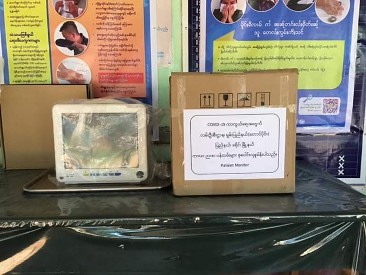 ရှမ်းပြည်နယ်(တောင်ပိုင်း) မိုးနဲမြို့နယ် ပြည်သူ့ဆေးရုံသို့ ကိုဗစ်-၁၉ ရောဂါ ကာကွယ်၊ ထိန်းချုပ်၊ ကုသရေးတွင် အသုံးပြုရန်အတွက် ပြည်နယ်လွှတ်တော်ကိုယ်စားလှယ်၊ လင်းခေးခရိုင်အုပ်ချုပ်ရေးမှူးနှင့် လင်းခေးခရိုင်လမ်းဦးစီးဌာန လက်ထောက်ညွှန်ကြားရေးမှူးတို့က ယနေ့ မွန်းလွဲ ၂ နာရီတွင် မိုးနဲပြည်သူ့ဆေးရုံသို့ Patient Monitor စက်တစ်လုံး ပေးအပ်လှူဒါန်းရာ မိုးနဲမြို့နယ်အုပ်ချုပ်ရေးမှူးနှင့် မြို့နယ်ကုသရေးဦးစီးဌာနမှူးတို့က လက်ခံရယူခဲ့ကြောင်း သိရသည်။