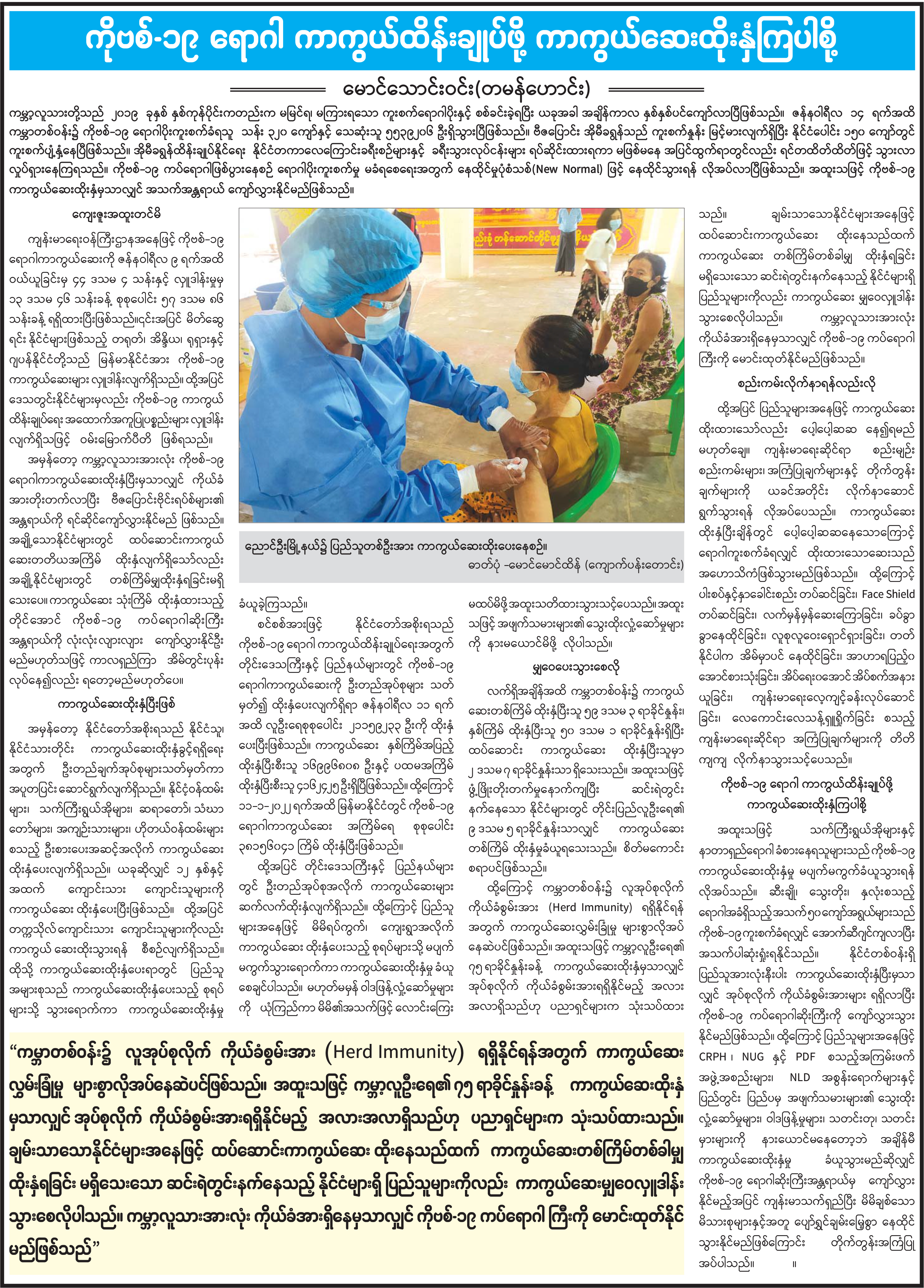 ကိုဗစ်-၁၉ ရောဂါ ကာကွယ်ထိန်းချုပ်ဖို့ ကာကွယ်ဆေးထိုးကြပါစို့