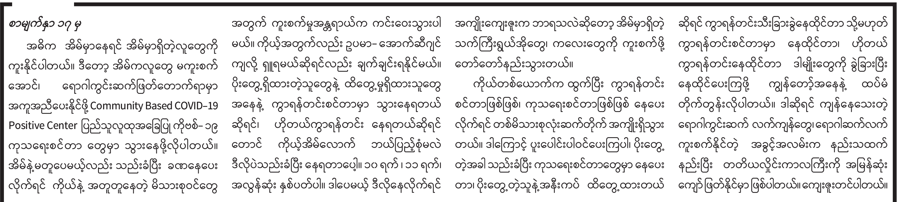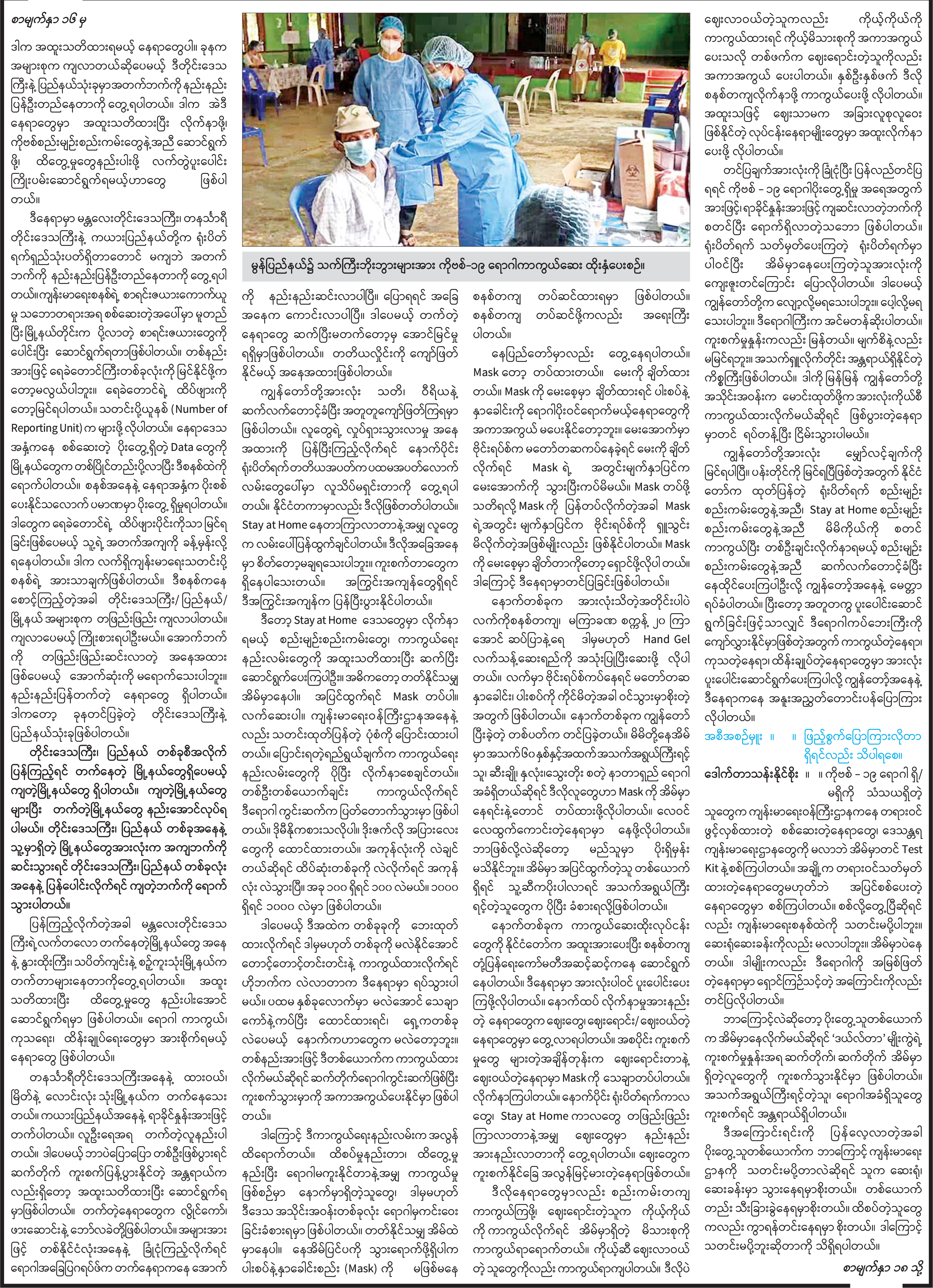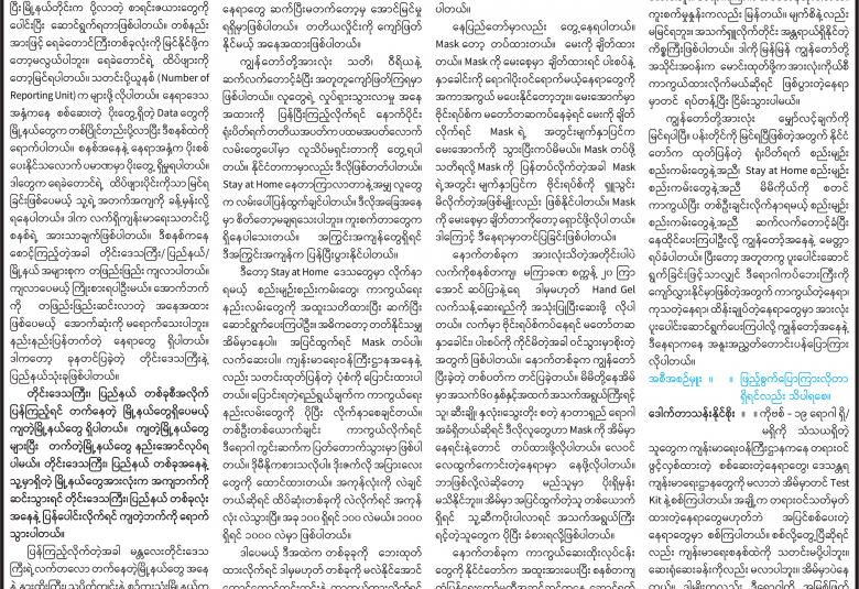 ကိုဗစ်-၁၉ ရောဂါ ကာကွယ်ထိန်းချုပ်ရေးဆိုင်ရာ ဆောင်ရွက်ချက်များအကြောင်း သိကောင်းစရာ အစီအစဉ်