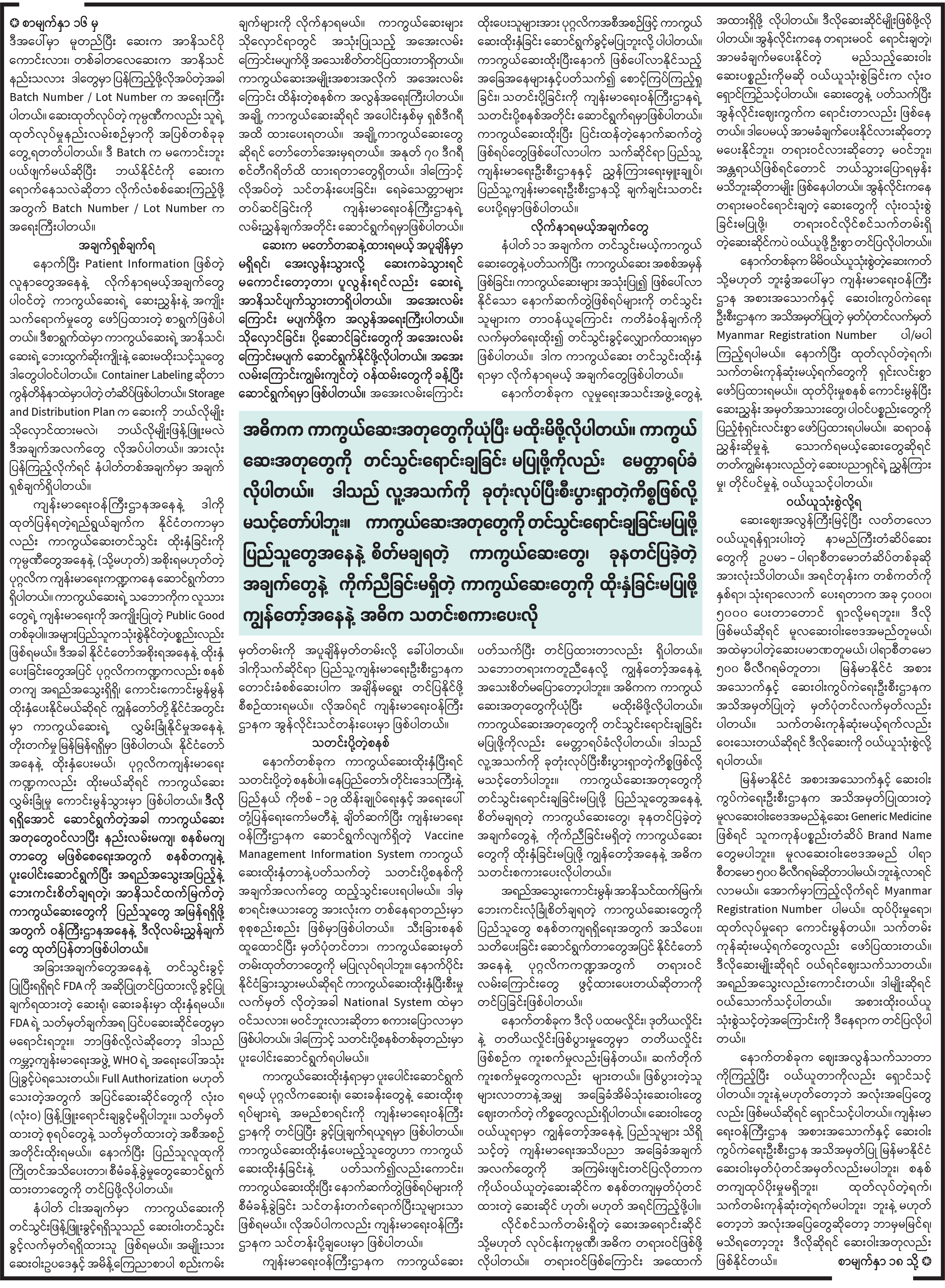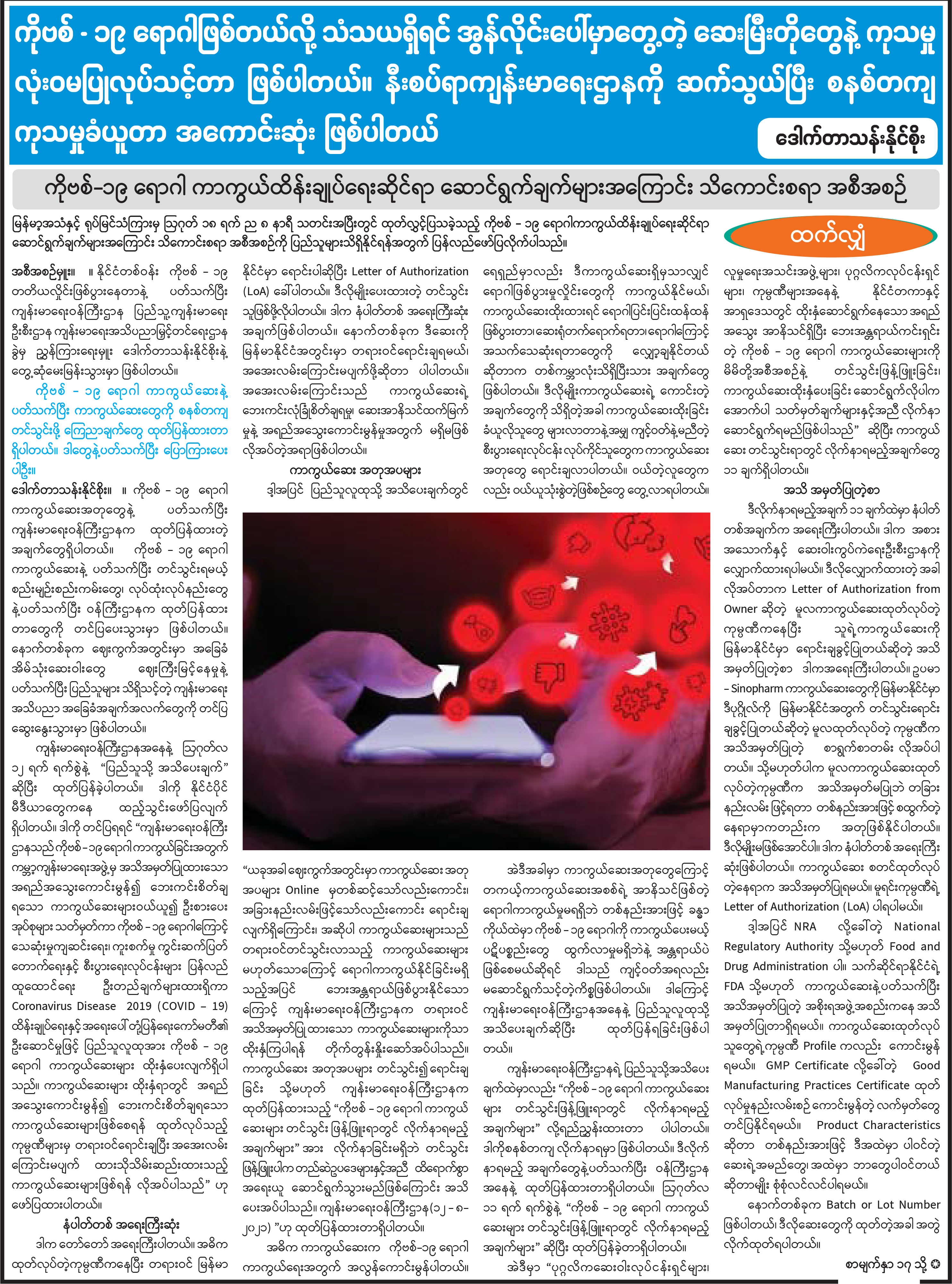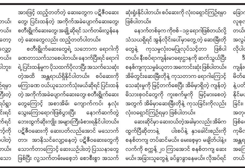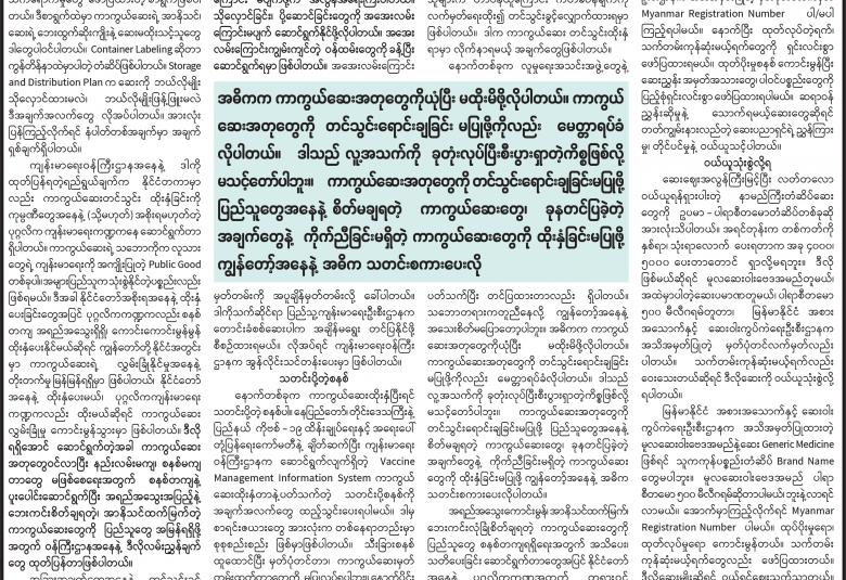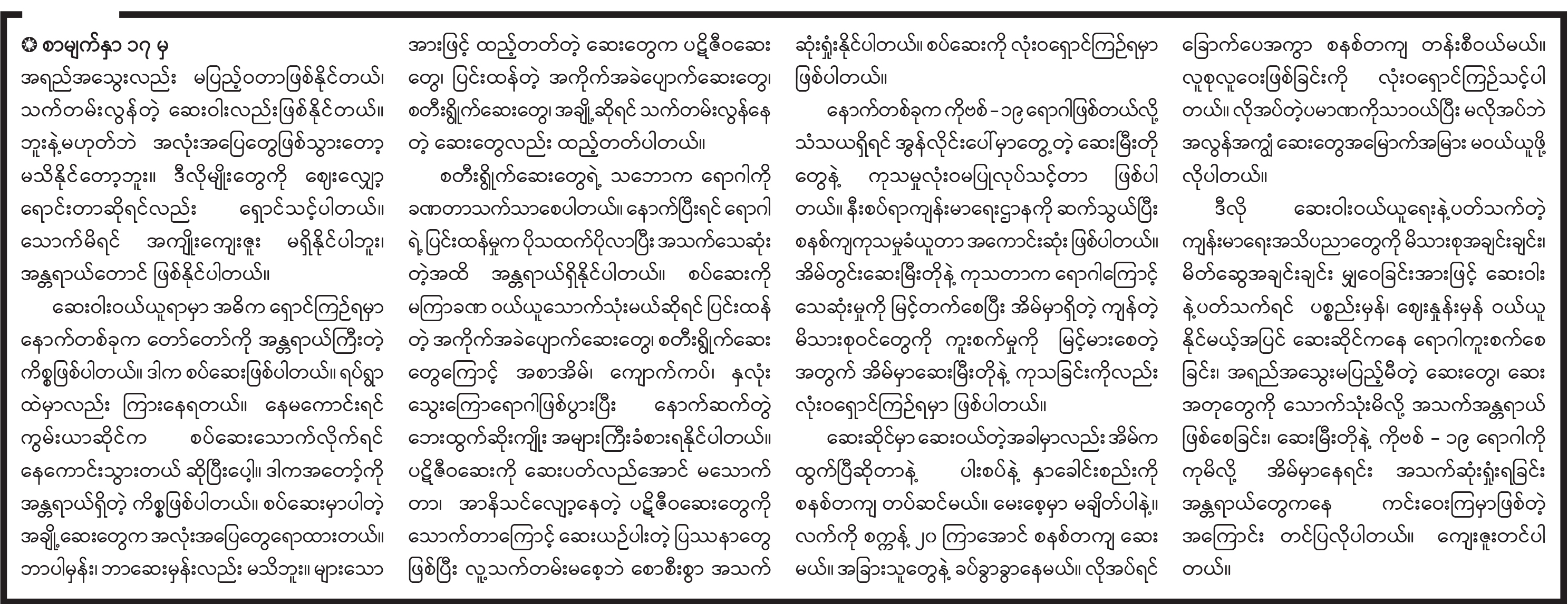 ကိုဗစ်-၁၉ ရောဂါ ကာကွယ်ထိန်းချုပ်ရေးဆိုင်ရာ ဆောင်ရွက်ချက်များအကြောင်း သိကောင်းစရာ အစီအစဉ်