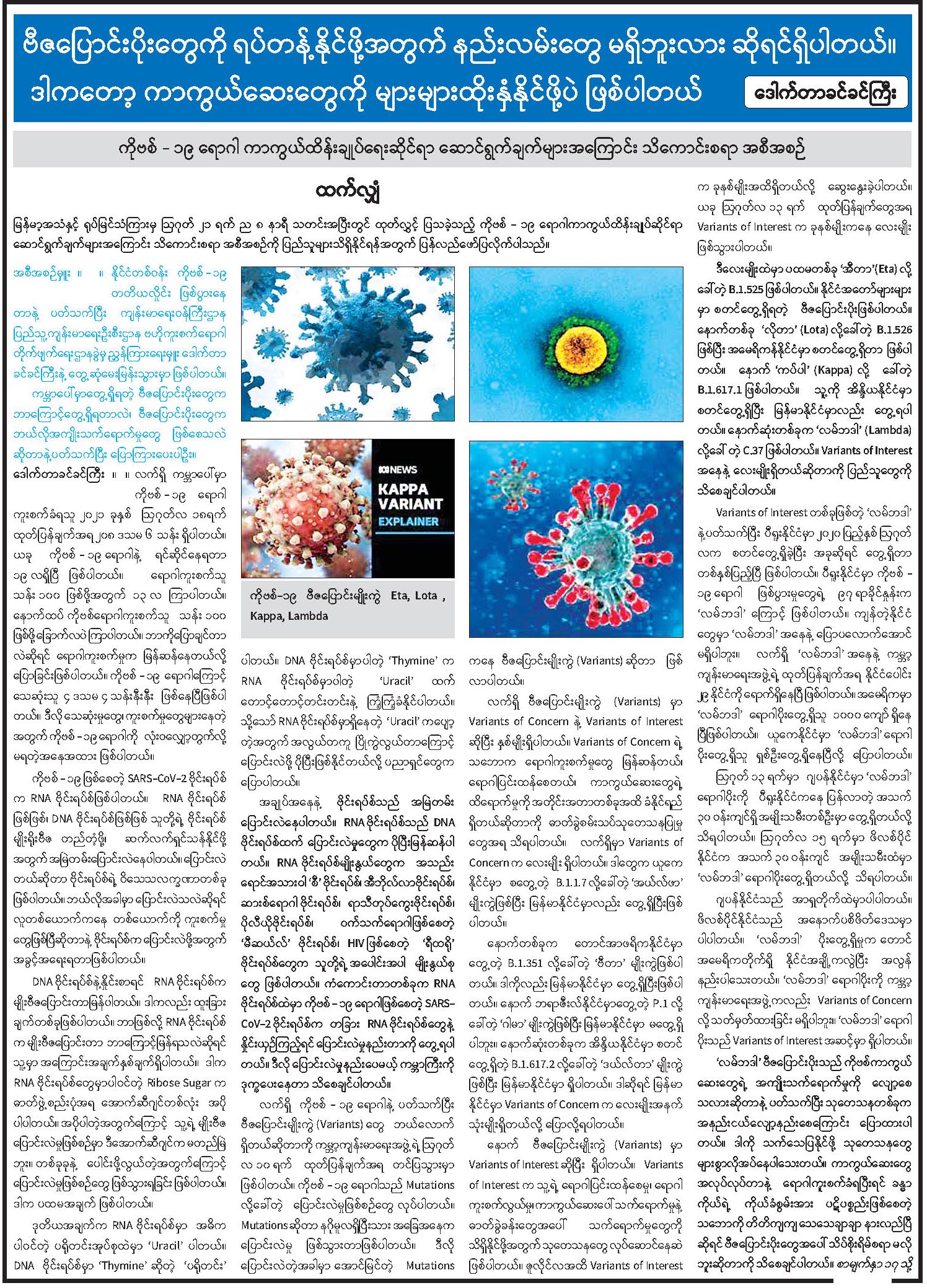ကိုဗစ် - ၁၉ ရောဂါ ကာကွယ်ထိန်းချုပ်ရေးဆိုင်ရာ ဆောင်ရွက်ချက်များအကြောင်း သိကောင်းစရာ အစီအစဉ်