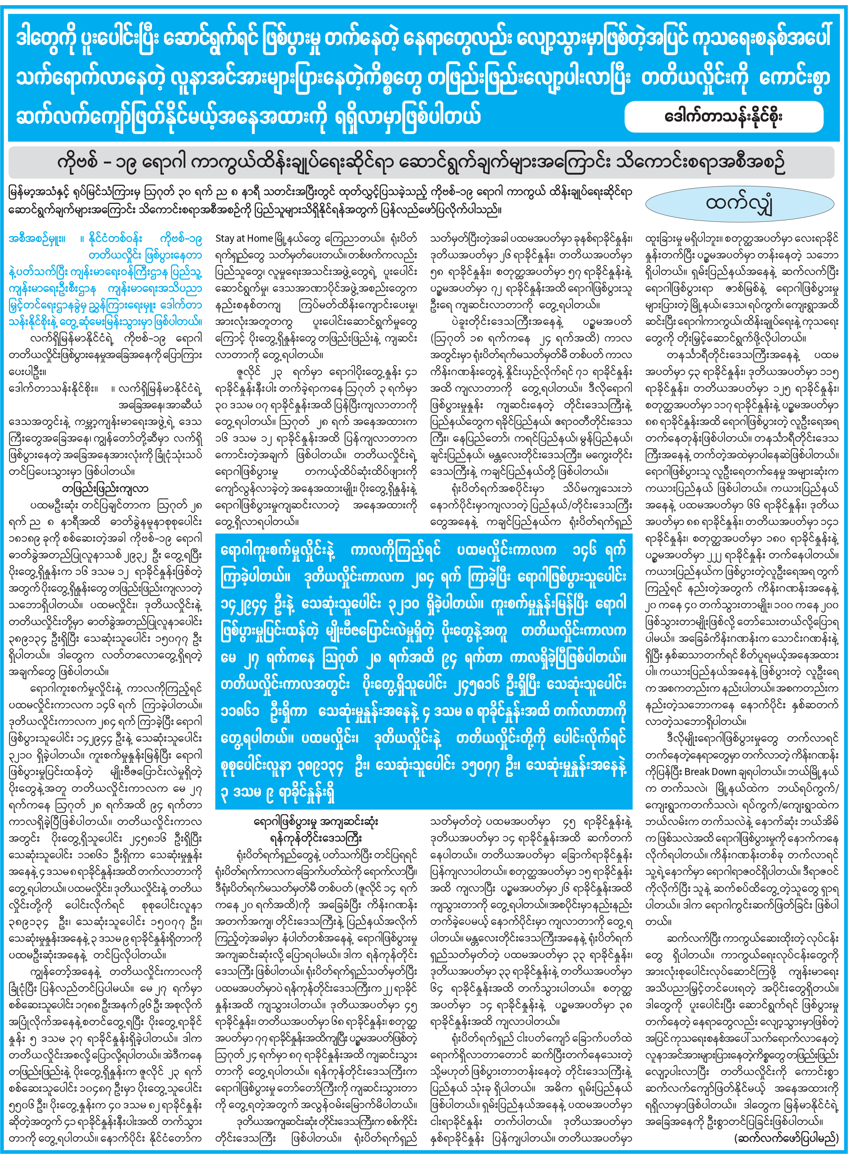ကိုဗစ်-၁၉ ရောဂါ ကာကွယ်ထိန်းချုပ်ရေးဆိုင်ရာ ဆောင်ရွက်ချက်များအကြောင်း သိကောင်းစရာအစီအစဉ်