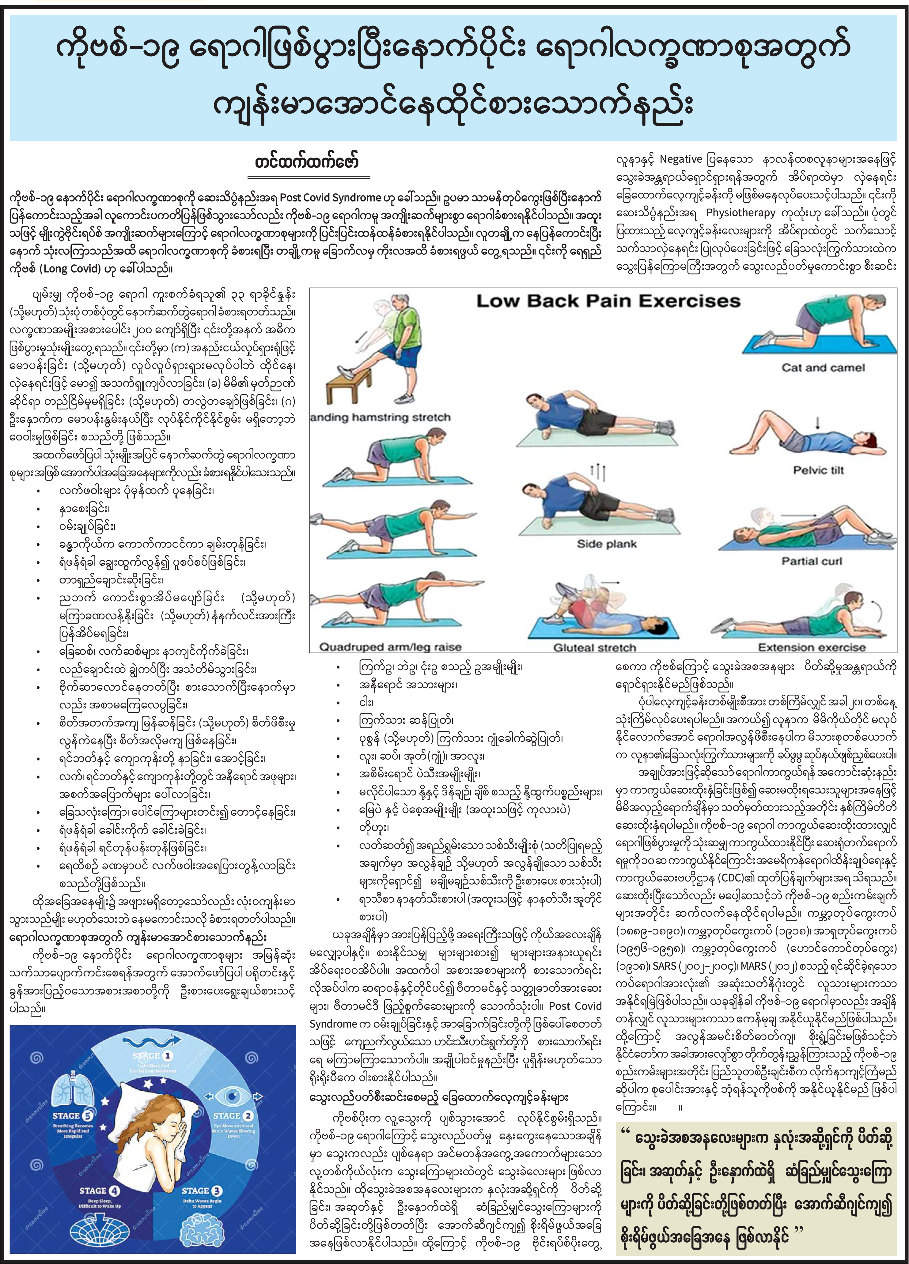 ကိုဗစ် - ၁၉ ရောဂါဖြစ်ပွားပြီးနောက်ပိုင်း ရောဂါလက္ခဏာစုအတွက် ကျန်းမာအောင် နေထိုင်စားသောက်နည်း