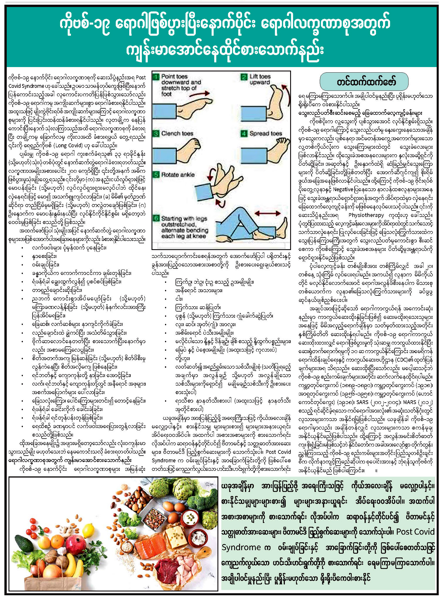 ကိုဗစ်-၁၉ ရောဂါဖြစ်ပွားပြီးနောက်ပိုင်း ရောဂါလက္ခဏာစုအတွက် ကျန်းမာအောင်နေထိုင် စားသောက်နည်း