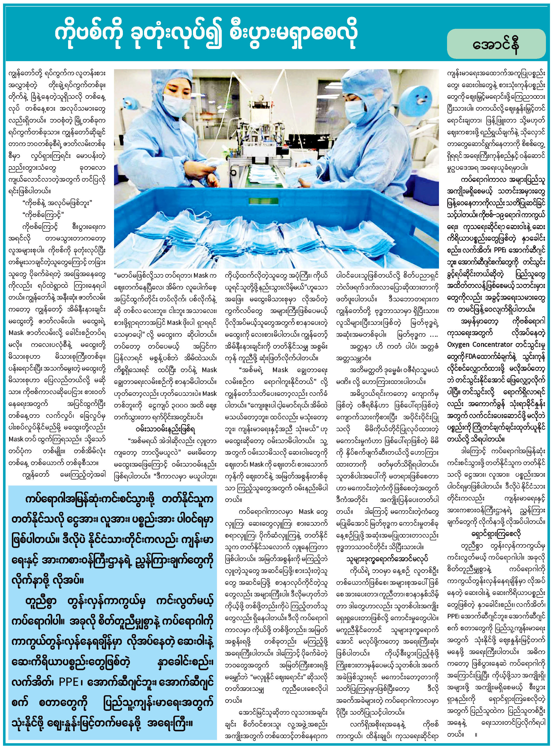 ကိုဗစ်ကို ခုတုံးလုပ်၍ စီးပွားမရှာစေလို