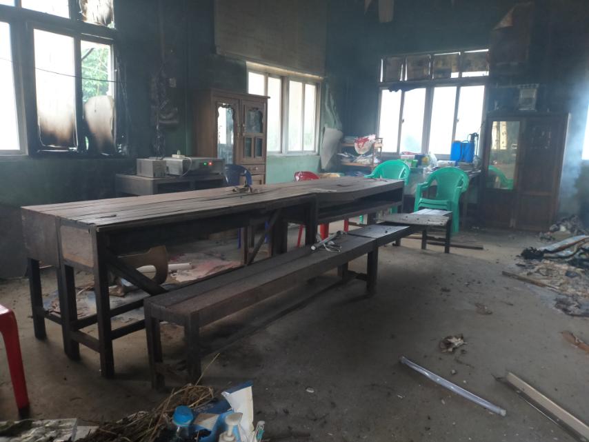 မီးလောင်နေရာသို့ ကျောင်းရှိဆရာ/ဆရာမများနှင့် ကျေးရွာပြည်သူများ ဝိုင်းဝန်းငြှိမ်းသတ်ခဲ့သဖြင့် မီးငြိမ်းသွားခဲ့ပြီး မီးလောင်ကျွမ်းမှုကြောင့် ကျောင်း၏ မျက်နှာကျက်များ၊ ဗီရို (၁)လုံး၊ သစ်သားထိုင်ခုံ (၂)လုံး၊ သစ်သားစားပွဲခုံ (၁)လုံး၊ အခန်းဝင်ပေါက် တံခါး (၁)ချပ်၊ ဆိုလာဝပ်-၃၀၀ မီးဘုတ် (၁)လုံး၊ ပလတ်စတစ်ထိုင်ခုံ (၃၃)လုံး၊ ပြတင်းပေါက် မှန်တံခါး (၂)ချပ်၊ ပလတ်စတစ်ပန်ကာ (အလတ်) (၆)လုံး၊ NIBBAN အမျိုးအစား Sound Box (၂)လုံး၊ A-11 အမျိုးအစား Sound Box (၁)လုံး၊ သင်ထောက်ကူပစ္စည်းများ၊ ရုံးသုံးစာရွက်စာတမ်းများ၊ ကိုဗစ်-၁၉ ရောဂါ ကာကွယ်ရေးသုံးပစ္စည်းများ ပျက်စီးခဲ့ကြောင်း သိရသည်။