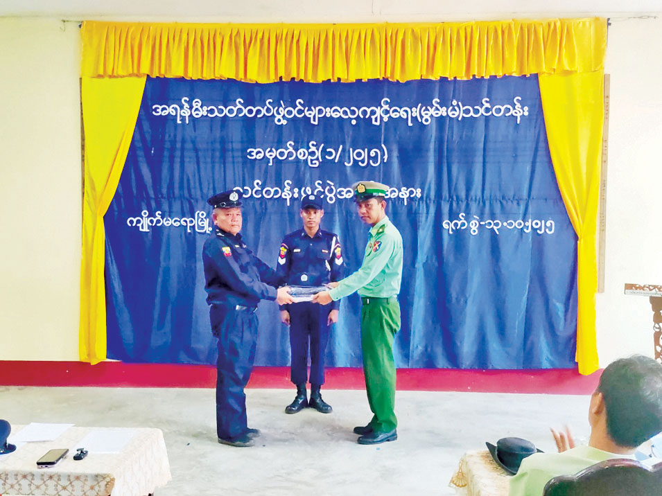ကျိုက်မရော မြို့နယ်၌ အရန်မီးသတ် တပ်ဖွဲ့ဝင်များ လေ့ကျင့်ရေး မွမ်းမံသင်တန်း (၁/၂၀၂၅)ဖွင့်ပွဲ အခမ်းအနားကို ယနေ့နံနက်ပိုင်းက ကျိုက်မရော မြို့နယ် မီးသတ်စခန်းရုံး သင်တန်းခန်းမ၌ ပြုလုပ်သည်။