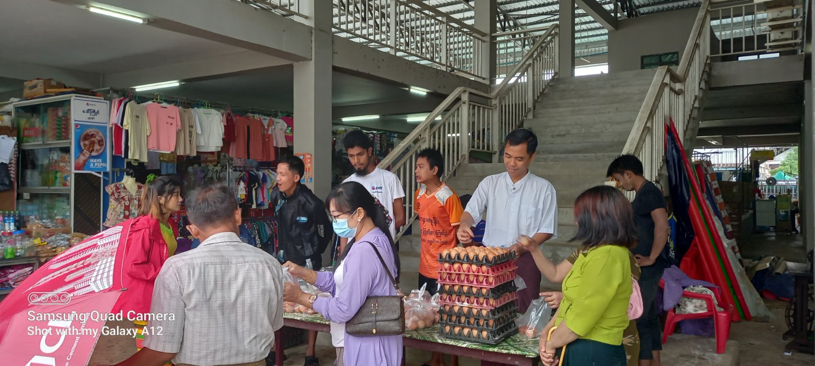 မွန်ပြည်နယ်၊ ကျိုက်မရောမြို့နယ်၌ စားသုံးကုန်ပစ္စည်းများ စျေးနှုန်းသက်သာစွာ ဝယ်ယူနိုင်စေရန် ဇူလိုင် ၂၅ ရက် နံနက်ပိုင်းက မြို့မစျေးကြီးရှေ့တွင် ပြည်သူများလက်ဝယ်အရောက် ရောင်းချပေးလျက် ရှိကြောင်းသိရသည်။