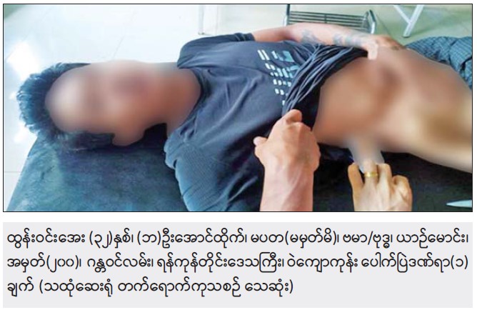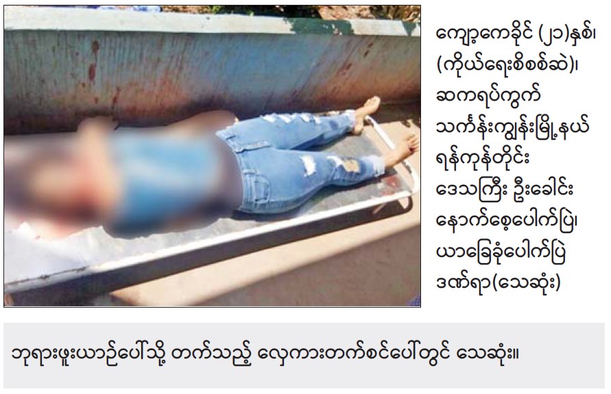 သောင်းကျန်းသူ/ အကြမ်းဖက်အုပ်စု PDF များ၏ ပစ်ခတ်မှုကြောင့် ဘုရားဖူး တောင်တက် မော်တော်ယာဉ်ဝင်းအတွင်း ဘုရားဖူးယာဉ်ပေါ်သို့တက်သည့် လှေကားတက်စင်တွင် ဒေါ်သန်းသန်းနွယ် (၄၂နှစ်)၊ ရန်ကုန်မြို့နေသူသည် သောင်းကျန်းသူ/အကြမ်းဖက်အုပ်စု PDF များ၏ လက်နက်ငယ်ထိမှန်မှုကြောင့် ဦးခေါင်းယာချိုးစောင်း ဖောက်ထွက် ဒဏ်ရာတစ်ချက်ဖြင့် သေဆုံးခြင်း၊ မကျော့ကေခိုင် (၂၁နှစ်)၊ ရန်ကုန်မြို့နေသူသည် ဦးခေါင်း နောက်စေ့မှ ကျည်ဖောက်ဝင် ဖြတ်ထွက်ဒဏ်ရာ တစ်ချက်၊ ယာခြေဖမိုး လက်နက်ကြီး ကျည်အစ ထိမှန်ဒဏ်ရာ တစ်ချက်တို့ဖြင့် သေဆုံးခြင်း၊ ဘုရားဖူး လှေကားတက်စင်တွင် ရပ်ထားသော 3K-6534 Fuso ယာဉ်ပေါ် ဝဲဘက်ထိုင်ခုံနောက်ဆုံးတွင် ထိုင်နေသူ ဒေါ်အေးအေးကြည်အသက် (၅၀ နှစ်)၊ ရန်ကုန်မြို့နေသူသည် လက်နက်ငယ် ထိမှန်မှုကြောင့် ယာပါးမှ ဖောက်ဝင်၊ ဝဲပါး ပေါက်ပြဲထွက်သည့် ဒဏ်ရာဖြင့် သေဆုံးခြင်း၊ ထိုကားပေါ်တွင် ထိုင်နေသူ ထွန်းဝင်းအေး (၃၂နှစ်)၊ ရန်ကုန်မြို့နေသူသည် လက်နက်ကြီးကျည်စ၊ လက်နက် ငယ်ကျည်တို့ ထိမှန်သောကြောင့် နောက်ကျောဝဲဘက်မှ ဝမ်းဗိုက်ယာဘက်သို့ ကျည်ထိမှန် ဖောက်ထွက် ဒဏ်ရာများဖြင့် သေဆုံးခြင်းနှင့် ဘုရားဖူး လှေကား တက်စင်အနီးအနားရှိ လုံခြုံရေးဆောင်ရွက်ပေးနေသော ရဲတပ်သား အောင်ပြည့်ဖြိုးပါ ဘုရားဖူးခရီးသည် အမျိုးသား ခုနစ်ဦး၊ အမျိုးသမီး ၁၀ ဦးတို့၏ ကိုယ်ခန္ဓာတွင် ဒဏ်ရာများရရှိခဲ့ကြောင်း တွေ့ရှိရသည်။