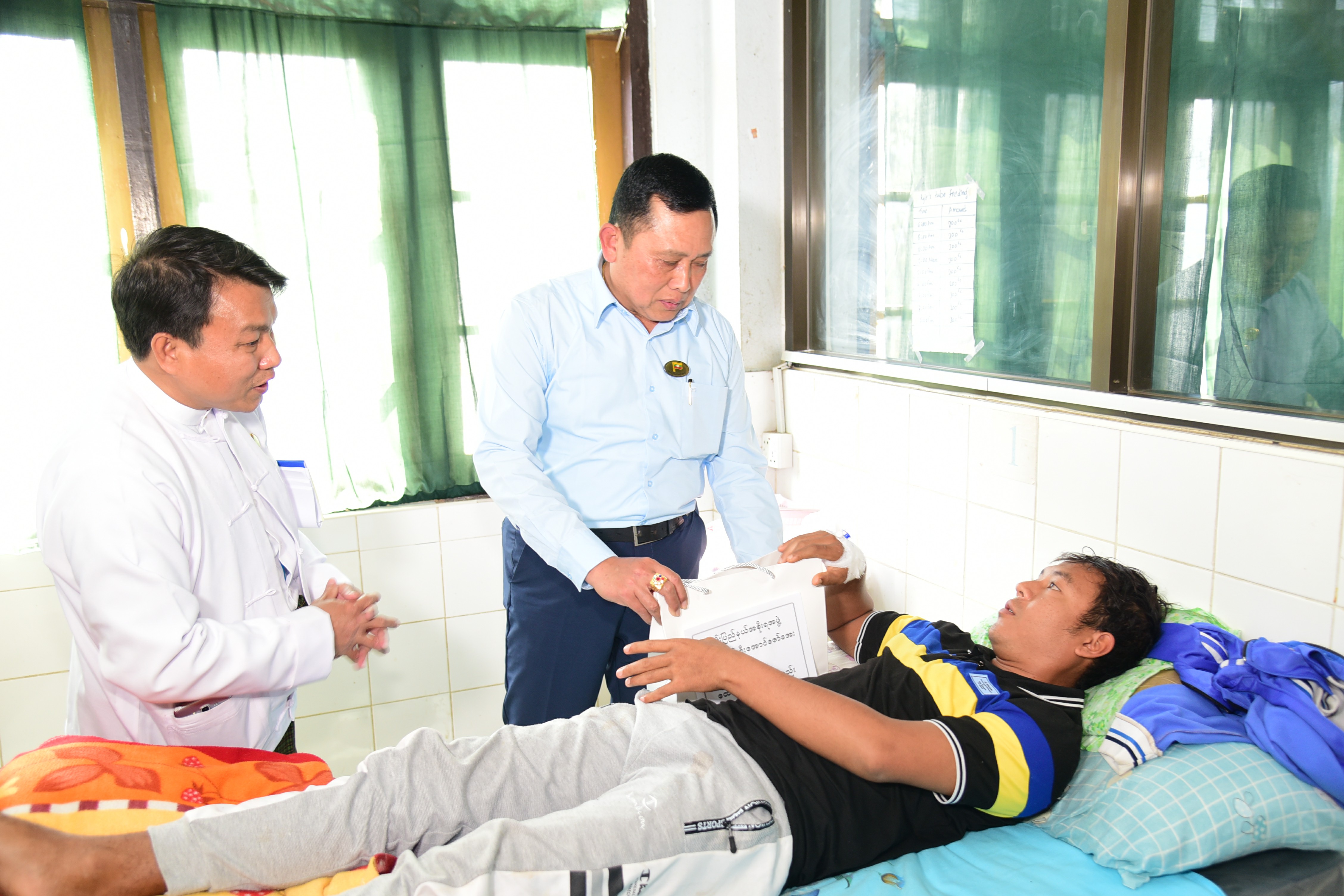 ထို့နောက် ပြည်နယ်ဝန်ကြီးချုပ်နှင့်အဖွဲ့သည် ကျိုင်းတုံပြည်သူ့ဆေးရုံအား သွားရောက်၍ ဆရာ၊ ဆရာမများနှင့် တွေ့ဆုံကာ ဆေးကုသမှုခံယူနေသော လူနာများနှင့် သံဃာတော်၊ ကိုရင်လေးတို့ကို ထောက်ပံ့ပစ္စည်းများ ပေးအပ်ပြီး ကျိုင်းတုံပြည်သူ့ဆေးရုံတွင် တာဝန်ထမ်းဆောင်နေသော ဆရာ၊ ဆရာမများအား ရှမ်းပြည်နယ်အစိုးရအဖွဲ့မှ ထောက်ပံ့ငွေနှင့် စားစရာပစ္စည်းများကို ပြည်နယ်ဝန်ကြီးချုပ်၊ တိုင်းမှူး၊ ပြည်နယ်ဝန်ကြီးများ၊ ပြည်နယ် ဥပဒေချုပ်တို့က ထောက်ပံ့ပေးအပ်ခဲ့ကြကြောင်း သိရှိရသည်။