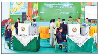 ရှမ်းပြည်နယ်(အရှေ့ပိုင်း)ကျိုင်းတုံ မြို့၌ မြန်မာအီလက်ထရောနစ်မဲ ပေးစက်(MEVM) ကိုင်တွယ်အသုံးပြုနည်း သင်တန်းဖွင့်ပွဲနှင့် မဲပေး စက်လက်တွေ့သရုပ်ပြ စမ်းသပ်မဲ ပေးခြင်းအခမ်းအနားကို ဇူလိုင် ၂၁ ရက်က အမှတ်(၂)အခြေခံပညာအထက်တန်းကျောင်း သန်လွင် ခန်းမ၌ ကျင်းပသည်။