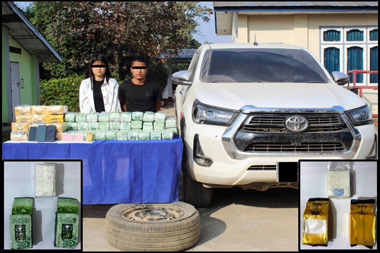 ဖြစ်စဉ်မှာ မူးယစ်ဆေးဝါးတားဆီးနှိမ်နင်းရေးရဲတပ်ဖွဲ့မှ တပ်ဖွဲ့ဝင်များပါဝင်သော ပူးပေါင်းအဖွဲ့သည် ဖေဖော်ဝါရီ ၁၀ ရက် ည ၇ နာရီခွဲတွင် ကျိုင်းတုံမြို့နယ်၊ ပင်းတောက်ကျေးရွာအုပ်စု၊ ဝမ်တာပုံကျေးရွာအနီးတွင် အိုက်ခမ်းယွန်း မောင်းနှင်ပြီး မနန်းဆိုင်မို လိုက်ပါလာသည့် TOYOTA HILUX REVO မော်တော်ယာဉ်ကို သတင်းအရရှာဖွေရာ ယာဉ်ပေါ်မှ ကက်တမင်း ၃၉ ကီလို (တစ်ကီလိုလျှင် ၈၅ သိန်း နှုန်းဖြင့် ၎င်းဒေသတန်ဖိုးငွေ ၃၃၁၅ သိန်း) နှင့် အိုက်စ် (မက်သ်အဖတ်တမင်း) ၁၈ ကီလို (တစ်ကီလိုလျှင် ၈၀ သိန်းနှုန်းဖြင့် ၎င်းဒေသတန်ဖိုးငွေ ၁၄၄၀ သိန်း) တို့ကိုလည်းကောင်း ဖမ်းဆီးရမိခဲ့သည်။
