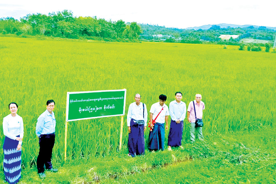 ရှမ်းပြည်နယ်(အရှေ့ပိုင်း) ကျိုင်းတုံမြို့နယ် မိုင်းဇင်းကျေးရွာရှိ မိုးစပါး စီမံကိန်းသီးနှံ (သက်တံ့ရောင်စီမံကိန်း) စိုက်ပျိုးလျက်ရှိသည့် မိုင်းဇင်းလယ်ယာနှင့် အထွေထွေစီးပွားရေးလုပ်ငန်း သမဝါယမအသင်းလီမိတက်က ရွှေရင်အေးမိုးစပါးမျိုး ဧက ၅၀ စိုက်ပျိုးထားရှိသည့် အခြေအနေ အား ယမန်နေ့ ညနေ ၄ နာရီတွင် တာဝန်ရှိသူများက ကွင်းဆင်းကြည့်ရှုသည်။