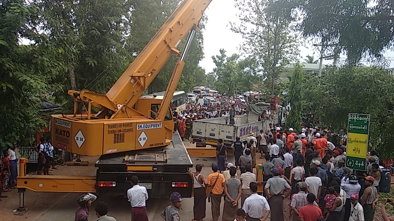 ယင်းနောက် မြို့နယ်ပြည်သူ့ဆေးရုံသို့ လွှဲပြောင်းကုသပေးလျက်ရှိပြီး ယာဉ်တိုက်မှုကြောင့် ရန်ကုန်ပြည် အဝေးပြေးကားလမ်းအား ၄ နာရီခွဲအထိ လမ်းပိတ်ဆို့မှုဖြစ်ပွားခဲ့ရာ မြို့နယ်အုပ်ချုပ်ရေးမှူး ဦးတင်ကိုကို၊ မြို့နယ်ရဲတပ်ဖွဲ့မှူး ရဲမှူးဝင်းမြင့်နှင့် တပ်ဖွဲ့ဝင်များ၊ မီးသတ်တပ်ဖွဲ့ဝင်များ၊ မြို့နယ်အတွင်းရှိ ပရဟိတအဖွဲ့များက ကူညီကယ်ဆယ်ရေး လုပ်ငန်းများ ဆောင်ရွက်ပေးခဲ့ကြသည်။