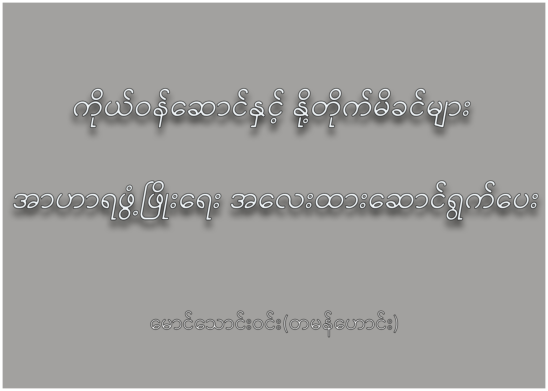 ဆိုရလျှင် ကလေးငယ်များ ကျန်းမာပျော်ရွှင် ရောဂါကင်းစင်စေရန်အတွက် မိခင်များ ကိုယ်ဝန် ဆောင်ကာလနှင့် မီးဖွားပြီး နို့တိုက်မိခင်ကာလတို့ မှာပါ အာဟာရပြည့်ဝရန် လိုအပ်သည်။ အာဟာရ ပြည့်ဝစွာရရှိစေရန်အတွက် အင်အားဖြစ်စေသော အစာ၊ ခန္ဓာကိုယ်ကြီးထွားစေသောအစာနှင့် ရောဂါကာကွယ်စေသောအစာ စသည့် အစာအုပ်စု သုံးမျိုးစလုံးကို နေ့စဉ်မျှတစွာ စားသုံးနိုင်ရန်နှင့် မိမိတို့ ဝင်ငွေနှင့်ကိုက်ညီသော အာဟာရပြည့် အစားအစာများကို ကျန်းမာရေးအသိပညာဗဟုသုတဖြင့် စားသောက်နေထိုင်သွားသင့်ပါကြောင်း ကိုယ်ဝန် ဆောင်နှင့် နို့တိုက်မိခင်များ အာဟာရဖွံ့ဖြိုးရေး ရက်သတ္တပတ်အတွက် အလေးထား တိုက်တွန်းရေးသားလို က်ရပါသည်။