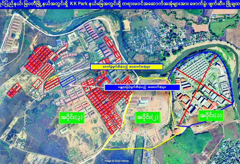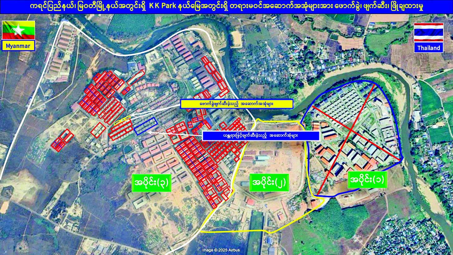 ထိုသို့ အွန်လိုင်းလိမ်လည်လောင်းကစားမှုတိုက်ဖျက်ရေး လုပ်ငန်းများဆောင်ရွက်လျက်ရှိရာ ယနေ့တွင် မြဝတီ-မဲထော်သလေး (KK Park) နယ်မြေအတွင်းရှိ အွန်လိုင်းလိမ်လည်လောင်းကစားမှုများ ကျူးလွန်ရာတွင် အသုံးပြုခဲ့သည့် အပိုင်း(၃) နယ်မြေအတွင်းရှိ တရားမဝင် ၄ ထပ်အဆောက်အအုံ ၁ လုံး၊ ၃ ထပ်အဆောက်အအုံ ၂ လုံးနှင့် ၂ ထပ်အဆောက်အအုံ ၁၄ လုံး၊ စုစုပေါင်း တရားမဝင်အဆောက်အအုံ ၁၇ လုံးကို ထပ်မံဖြိုချဖျက်ဆီးခဲ့သဖြင့် KK Park နယ်မြေအတွင်းရှိ တရားမဝင်အဆောက်အအုံ စုစုပေါင်း ၆၃၅ လုံး အနက် ၃၉၈ လုံးကို စနစ်တကျ ဖြိုချဖျက်ဆီးပြီးဖြစ်ကြောင်း သိရှိရသည်။