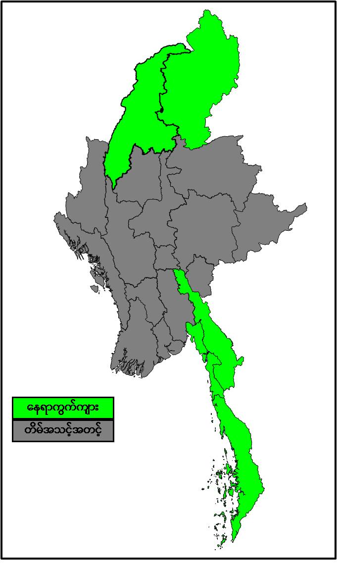 တနင်္သာရီတိုင်းဒေသကြီးတွင် နေရာကျဲကျဲနှင့် ကချင်ပြည်နယ်၊ ကရင်ပြည်နယ်နှင့် မွန်ပြည်နယ်တို့တွင် နေရာကွက်ကျား မိုးထစ်ချုန်းရွာနိုင်သည်။