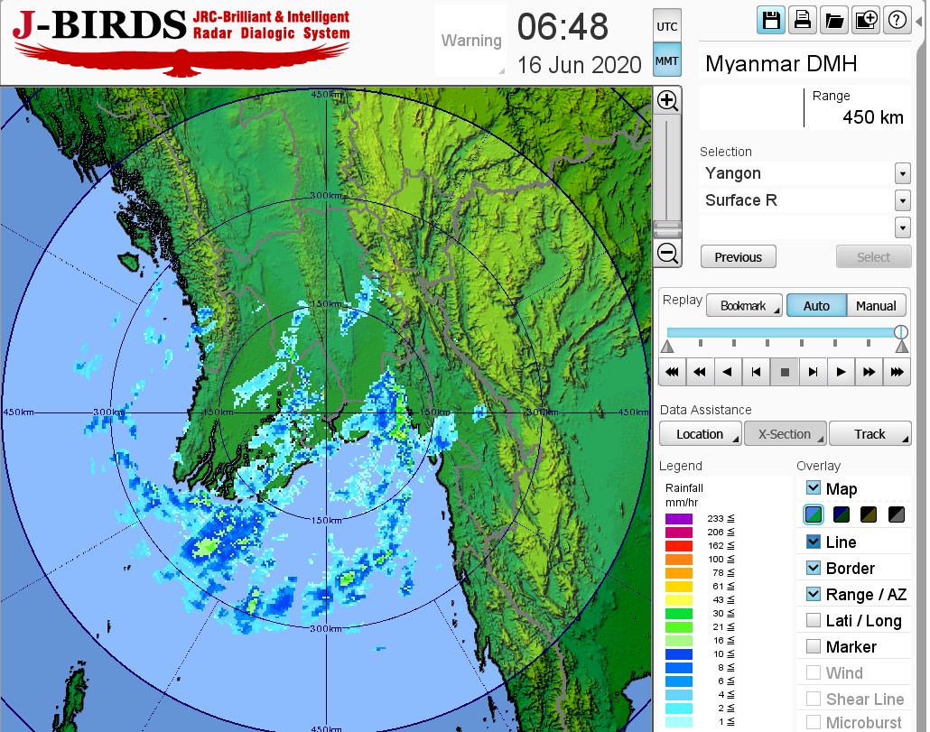 ယနေ့ညနေအထိ ခန့်မှန်းချက်အနေဖြင့် စစ်ကိုင်းတိုင်းဒေသကြီး အောက်ပိုင်းနှင့် မန္တလေးတိုင်းဒေသကြီးတို့တွင် နေရာကွက်ကျား၊ မကွေးတိုင်းဒေသကြီးနှင့် ကယားပြည်နယ်တို့တွင် နေရာကျဲကျဲ၊ နေပြည်တော်တွင် နေရာစိပ်စိပ်နှင့် ကျန်တိုင်းဒေသကြီးနှင့် ပြည်နယ်တို့တွင် နေရာအနှံ့အပြား မိုးထစ်ချုန်းရွာပြီး၊ တနင်္သာရီတိုင်းဒေသကြီး၊ ကချင်ပြည်နယ်၊ ရခိုင်ပြည်နယ်နှင့် မွန်ပြည်နယ်တို့တွင် နေရာကွက်၍ မိုးကြီးနိုင်သည်။ ရွာရန် ရာနှုန်း(၈၀) ဖြစ်သည်။