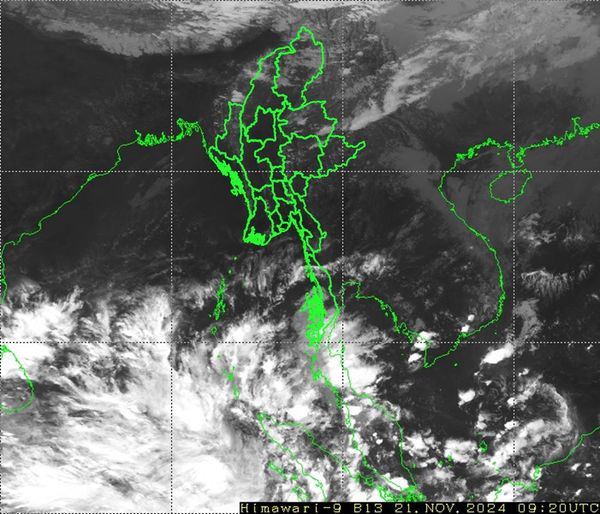 ဘင်္ဂလားပင်လယ်အော်အခြေအနေ။ ဘင်္ဂလားပင်လယ်အော်မြောက်ပိုင်းနှင့် အရှေ့အလယ်ပိုင်းတို့တွင် တိမ်အနည်းငယ် ဖြစ်ထွန်းနေပြီး၊ ကပ္ပလီပင်လယ်ပြင်နှင့် ကျန်ဘင်္ဂလားပင်လယ်အော်တို့တွင် တိမ်အသင့်အတင့်မှ တိမ်ထူထပ်နေပါသည်။