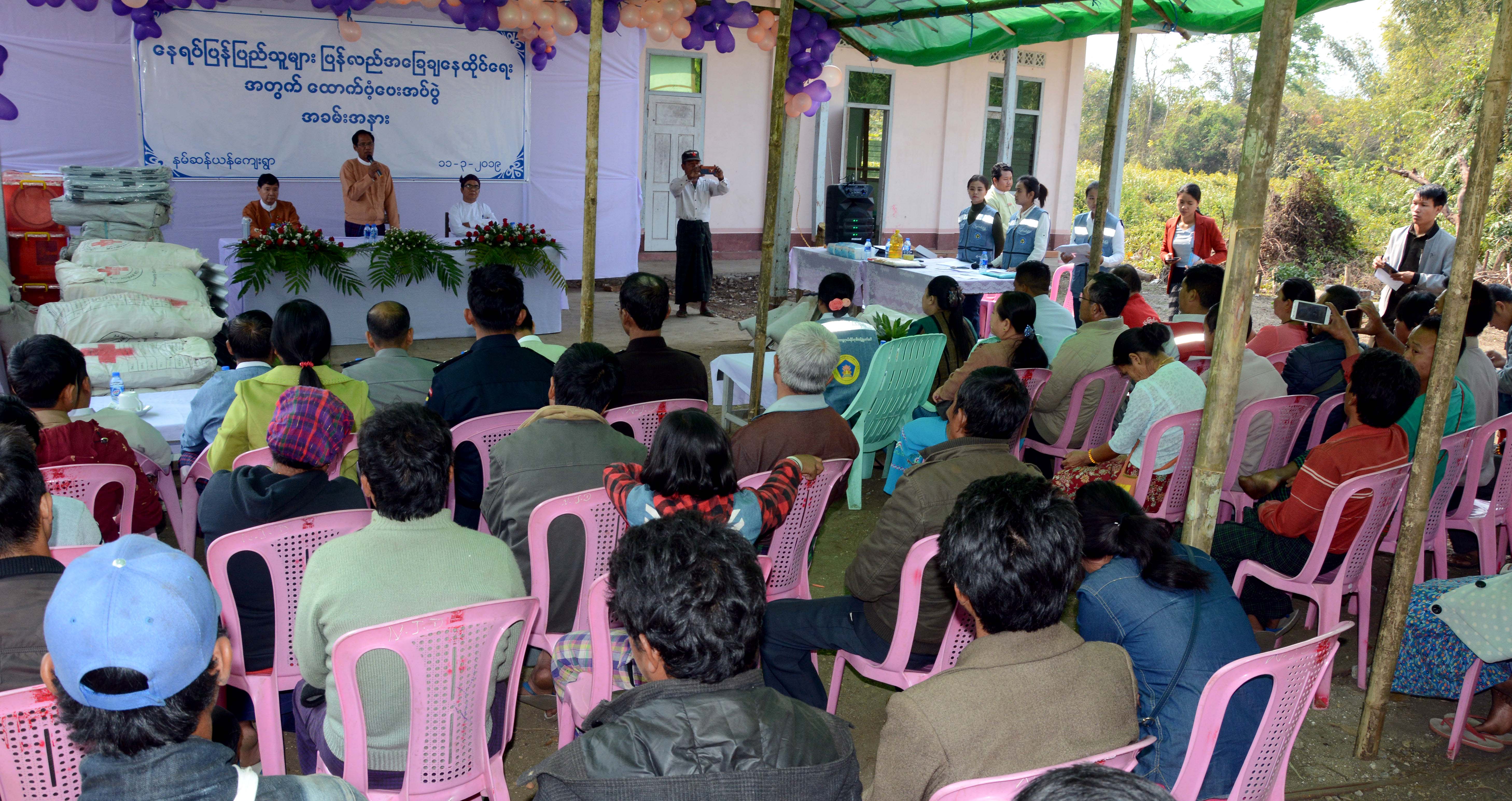ဆက်လက်၍ ဦးဖော်လားဂမ်ဖန်နှင့် ပြောင်းရွှေ့နေထိုင်မည့် တိုက်ပွဲရှောင်ပြည်သူများ ကိုယ်စား ရပ်ကွက်အုပ်ချုပ်ရေးမှူး ဦးဘရန်လီတို့က ကျေးဇူးတင်စကား ပြန်လည် ပြောကြားကြသည်။